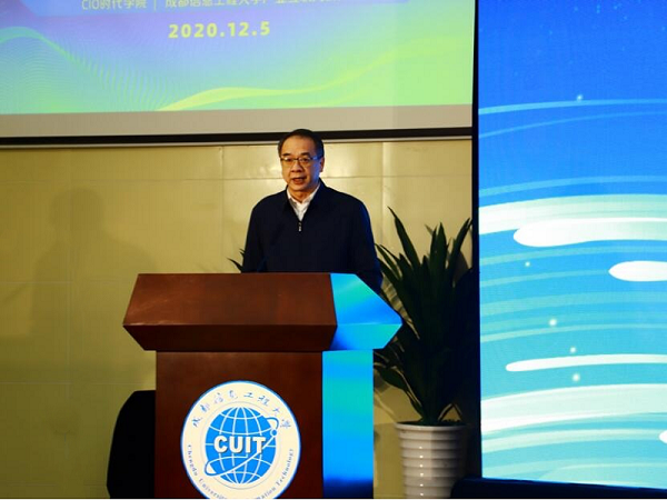 【本网讯】12月5日,由成都信息工程大学与CIO时代学院联合主办的“2020中国智慧教育高峰论坛”在我校成功举办。论坛的主题是“新技术带来的教育新模式”。联合国教科文组织高等教育创新中心主任李铭,我校校长余敏明、副校长舒红平,辽宁工业大学校长王琦,华中师范大学副校长李鸿飞,中国新一代信息技术产业推进联盟秘书长、CIO时代学院院长姚乐等领导和嘉宾以线上或线下的方式出席活动。