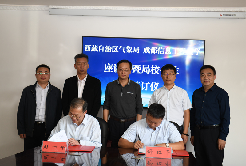 【本网讯】8月14日,西藏自治区气象局与成都信息工程大学战略合作协议在拉萨签署,根据协议双方将在气象人才培养、气象资源共享、气象科技研发和成果转化等方面开展合作,共同提升西藏自治区气象现代化发展。西藏自治区气象局局长向毓意,副局长赵一平、边巴次仁、金琪,学校副校长舒红平及相关人员参加了签约仪式。