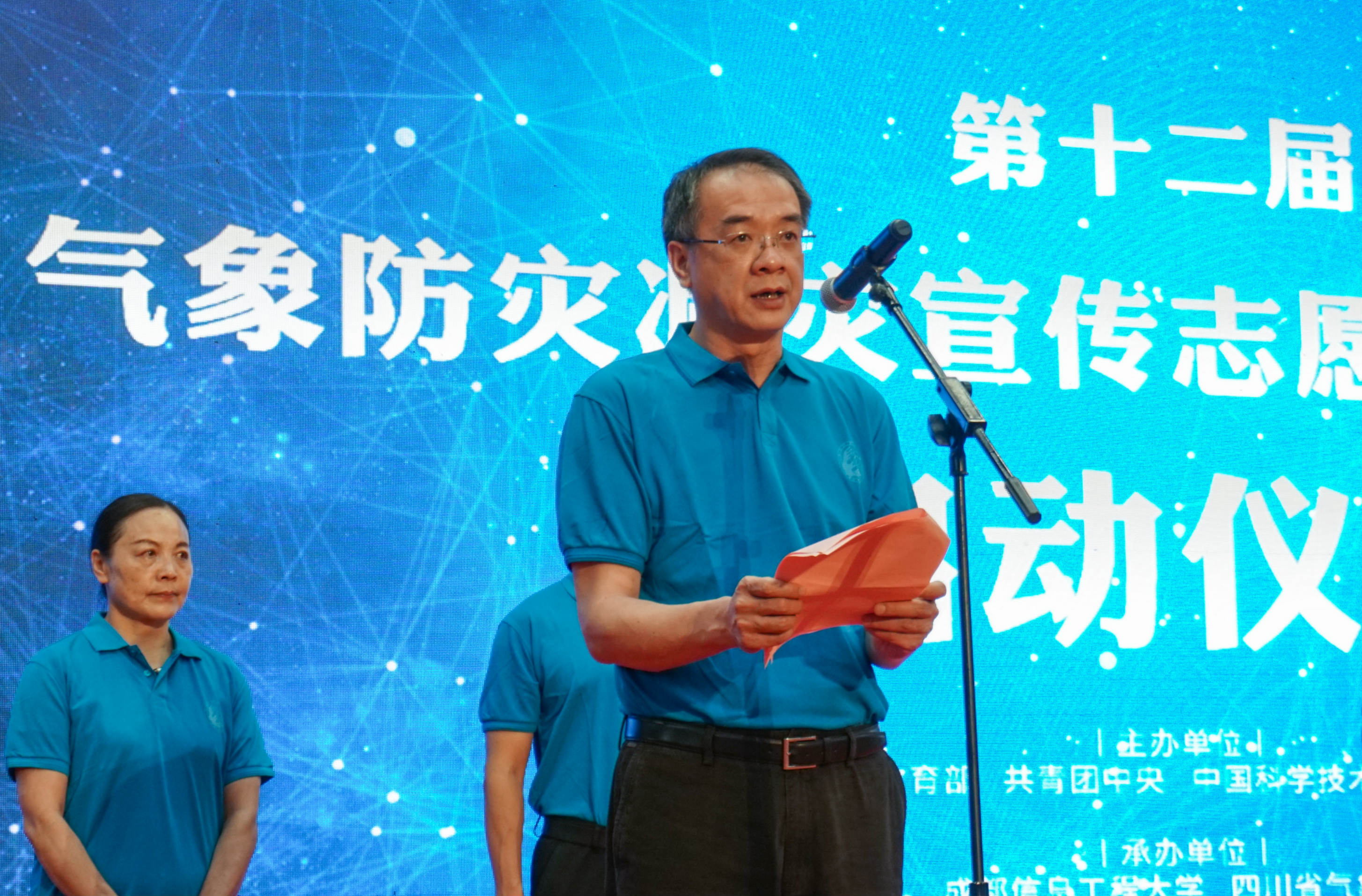 【本网讯】6月29日,由中国气象局、教育部、共青团中央、中国科学技术协会和中国气象学会主办,成都信息工程大学、四川省气象局承办,中国气象局公共气象服务中心、中国气象局宣传与科普中心支持,各省市气象局、气象学会、教育厅、团委、科协,南京信息工程大学等15所高校协办的第十二届“气象防灾减灾宣传志愿者中国行”活动启动仪式在学校航空港校区体育馆举行。