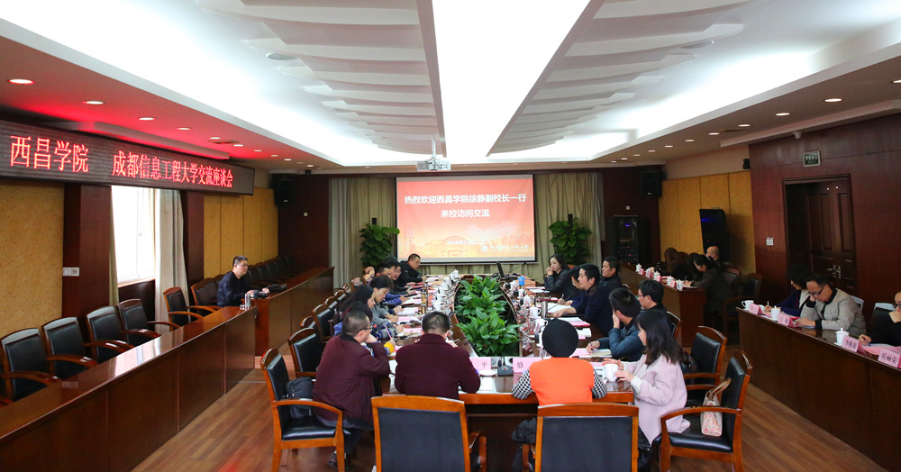 肖月强代表学校对徐静一行的到来表示热烈欢迎,并向来访人员介绍了学校基本情况及在服务信息产业、气象事业、统计事业和国防建设等方面的人才培养和科学研究。