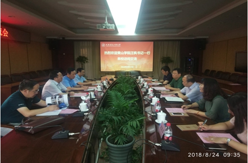 【本网讯】8月24日上午,黄山学院党委书记汪枫、副校长胡善风,教务处处长张小明一行来我校交流调研。学校党委书记周激流、副校长何建新,教务处处长方睿,计算机学院总支书记陈敏,教务处副处长易平,党政办公室副主任刘琰琰等参加了会议。会议由何建新主持。