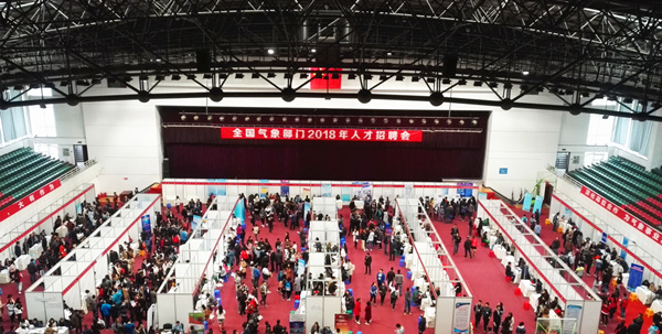 【本网讯】11月18日,由中国气象局主办的全国气象部门2018年人才招聘会在我校举行,这是该招聘会连续16次在我校举办。来自中国气象局在京直属单位以及全国各省、自治区、直辖市气象局等205家用人单位到场招聘,招聘专业以大气科学类为主,涵盖遥感应用类、地球科学类、环境科学类、计算机类、电子信息类、数理类、财会类等十几个学科领域。