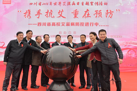 本次活动由四川省重大传染病防治工作委员会、四川省卫生和计划生育委员会、四川省教育厅、共青团四川省委员会主办,成都市防治艾滋病工作委员会、成都市卫生和计划生育委员会、四川大学承办。四川省副省长杨兴平、四川省人民政府副秘书长何旅章、四川省卫生计生委主任沈骥、四川省教育厅副厅长戴作安、共青团四川省委副书记张征、四川大学校长谢和平等出席活动启动仪式。来自全省艾滋病防控相关单位代表及各高校防艾志愿者服务队的同学代表参加了活动启动仪式。