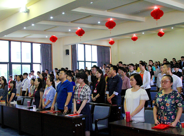 大会在庄严的国歌声中拉开帷幕,受省委教育工委表彰的优秀共产党员代表尹莉首先发言。尹莉在工作中对自己提出了对党忠诚、开拓进取,教书育人、为人师表,端正身心等要求,并用实际行动诠释了一名普通教师党员的责任和担当。