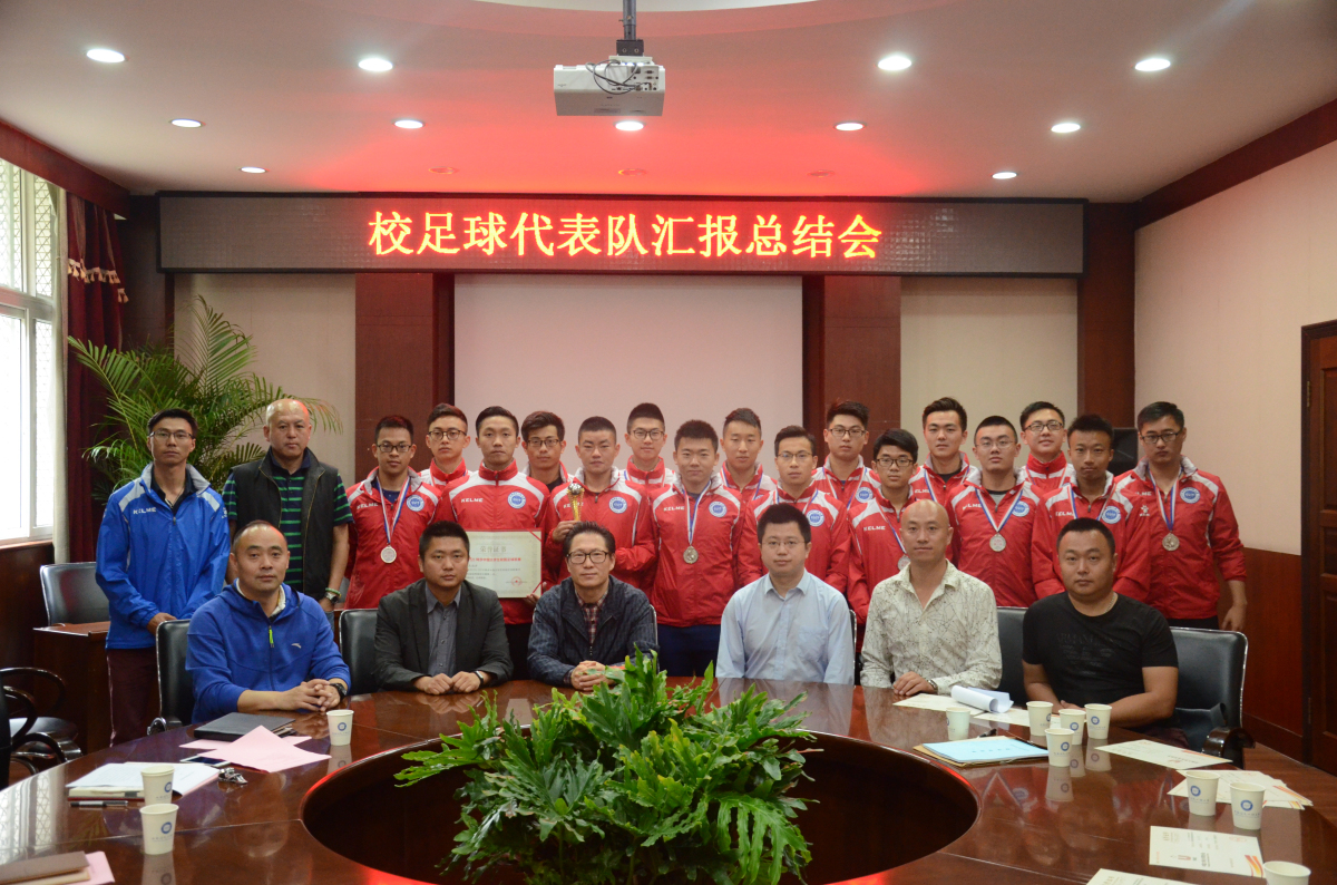 于世祥仔细听取了汇报,并就代表队取得成绩的原因进行了分析。他首先代表学校,代表赖书记、周校长,向大家表示热烈的祝贺和亲切的慰问。他指出,足球代表队取得这个成绩,不仅是个人荣誉,更是成都信息工程大学的荣誉。近年来,学校坚持“一切为了学生”的办学理念,秉承“成于大气、信达天下”的大学精神,推进教育教学一体化改革,构建全面全员全程综合素质教育体系,根据学生兴趣组织体育教学,提出了“在健康第一和先进工程教育理念指导下,努力构建‘知识、能力、素质’协调发展,更加重视体育能力培养的新型大学公共体育培养模式”的体育教学改革思想。本次校足球代表队连续在2013、2014年获得四川省高校校园组亚军以及大区赛亚军、进军全国总决赛,不是偶尔的,是我校体育教育教学改革成果的突出体现。