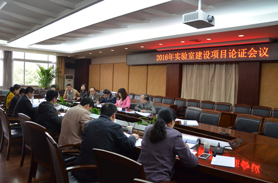 【本网讯】3月17日,学校2016年实验室建设项目论证会议在行政楼第七会议室召开,副校长何建新,教务处处长陈敏、副处长何晋及论证专家小组成员参加了会议。