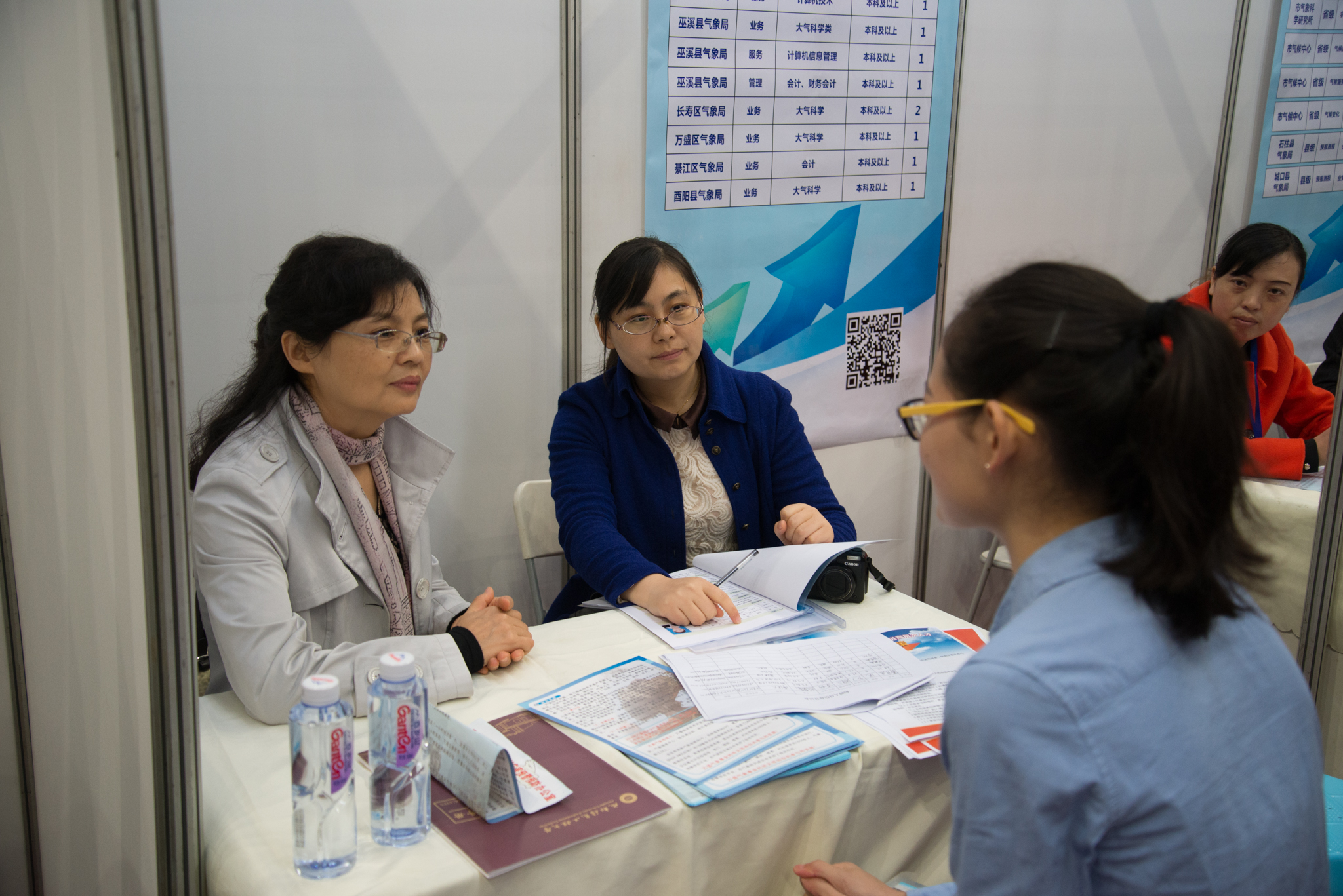 招聘会现场气氛热烈,250多位代表在现场接收简历、充分了解毕业生情况;部分气象局现场就进行笔试、面试;甚至有的省气象局还与考核过关的毕业生现场签约。辽宁省气象局人事处杜景波表示,此次大气类硕士以上毕业生报名后通过现场考试即可签约。