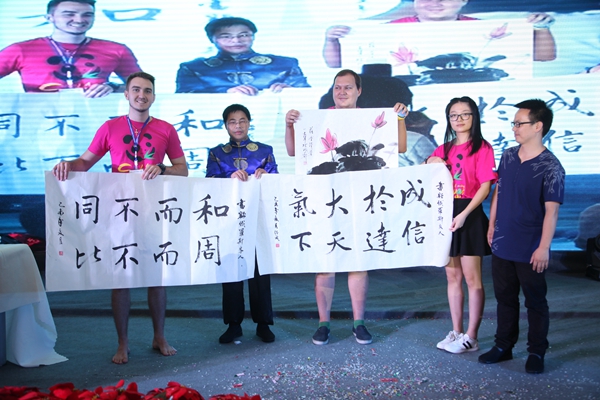 变幻无穷的魔术表演让观众们大开眼界。随后,来自我校的闵卫东、黄炼老师与民乐演奏老师们合作的《书、画、乐》,将中国传统的书法、国画和民乐表演融为一体。他们以作品祝愿中俄友谊长存,并将作品赠送给了俄罗斯的朋友。