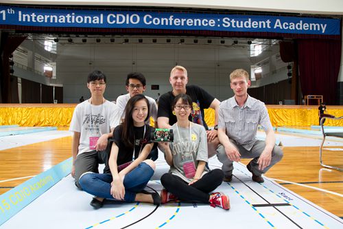 【本网讯】 2015年6月8—9日,“CDIO国际合作组织第十一届全球年会之CDIO学生竞赛(Student Academy)”在我校体育馆举行,来自全球的36名大学生随机组成6个小组参加了本次竞赛。