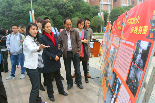 [本网讯]10月15日,电子工程学院在航空港校区开展了以“校园防火,你我有责”为主题的宣传活动,学院党委副书记敬枫蓉,副院长于世祥,学生处、保卫处领导参加了此次活动。