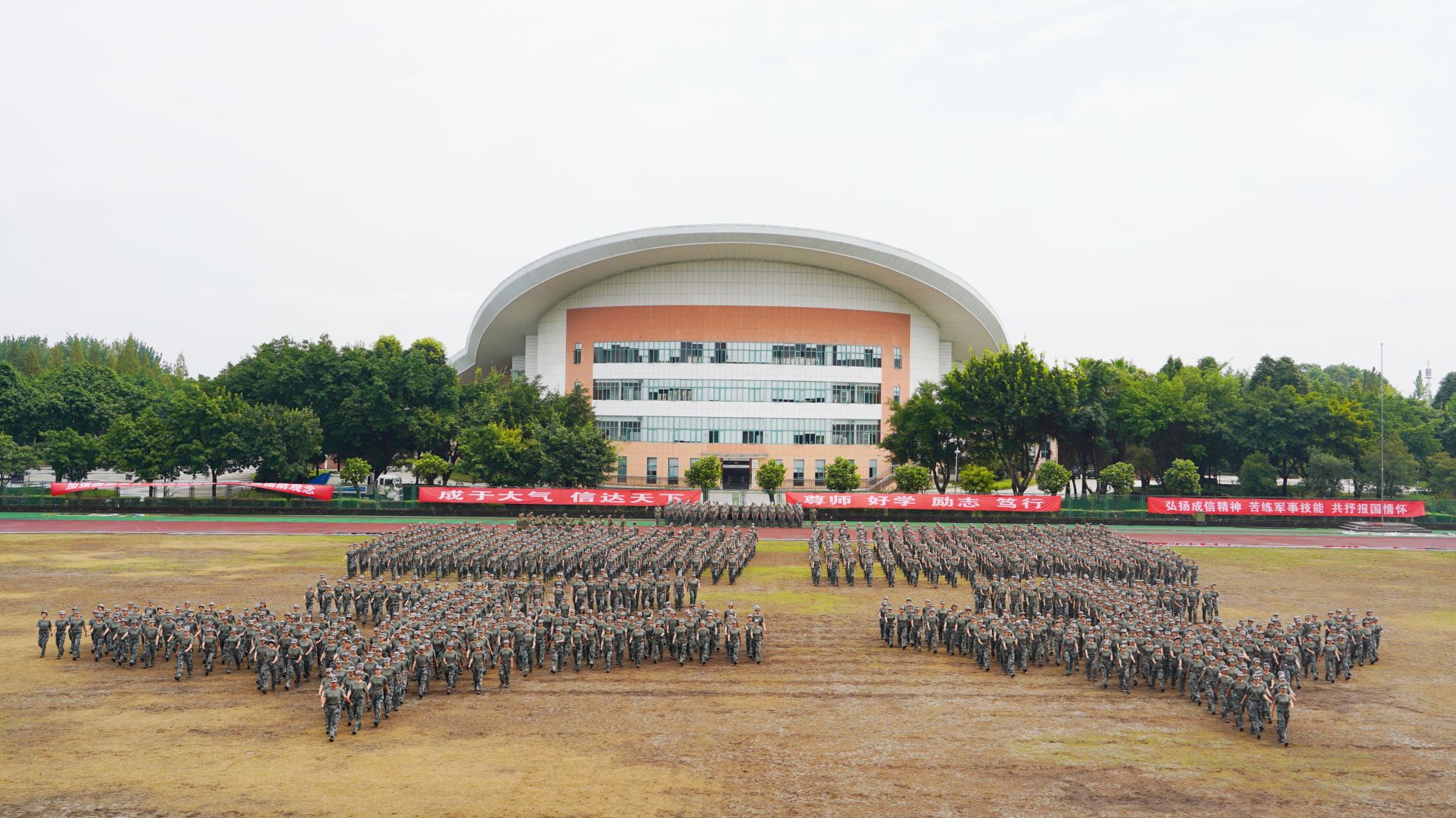 匕首操方队虎虎生威、巾帼不让须眉;军体拳方队整齐划一,酷飒中带着自信,豪迈中带着坚韧;花式方阵栩栩如生地摆出了战斗机造型,展示了学子们敢于创新,力争上游的精神面貌。同学行云流水地变换队列,展示出中国地图和“中国”“强国有我”等美观大气的队形,表达成信学子对祖国的热爱以及锐意进取、追求卓越的精神风貌。