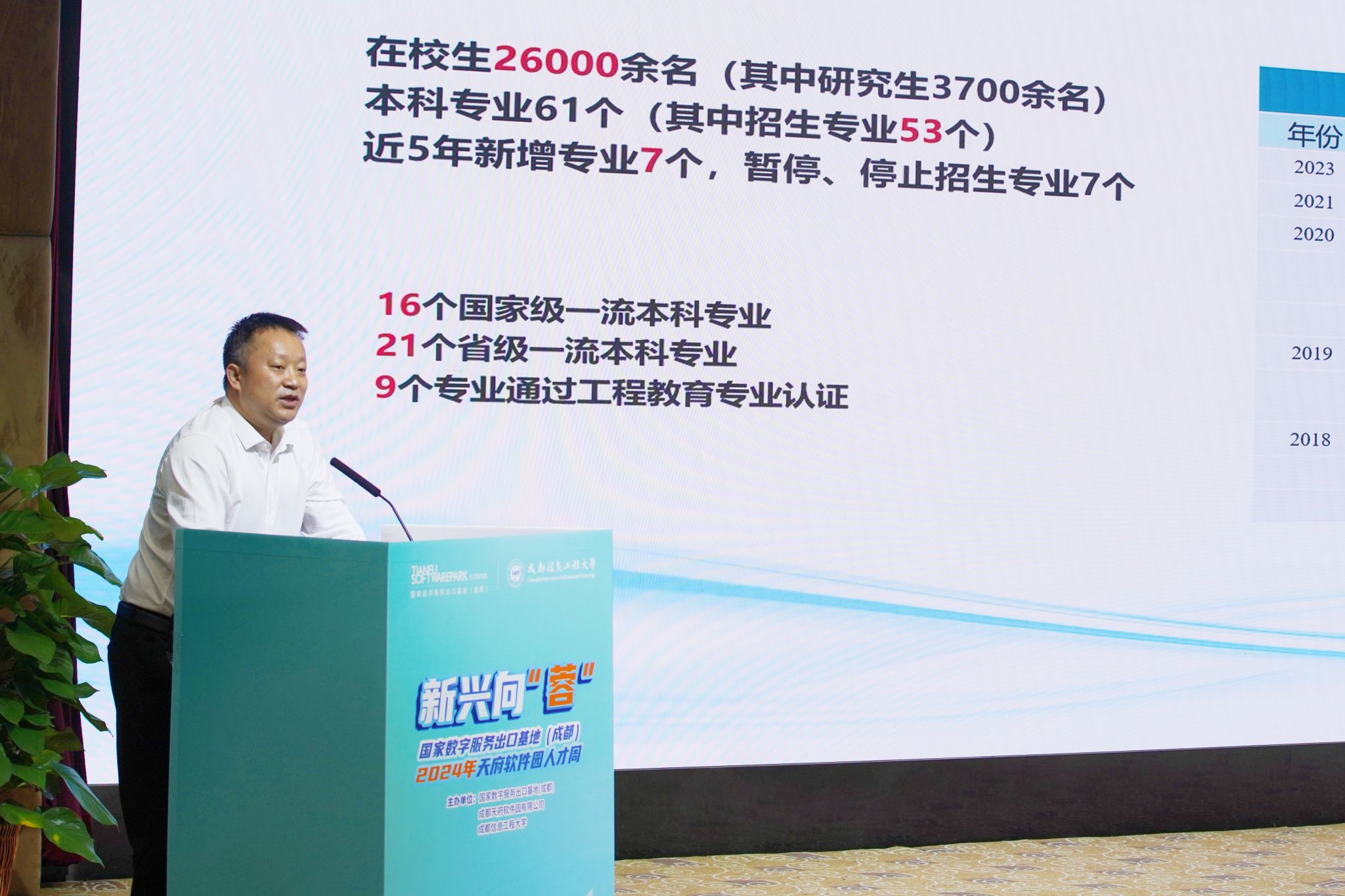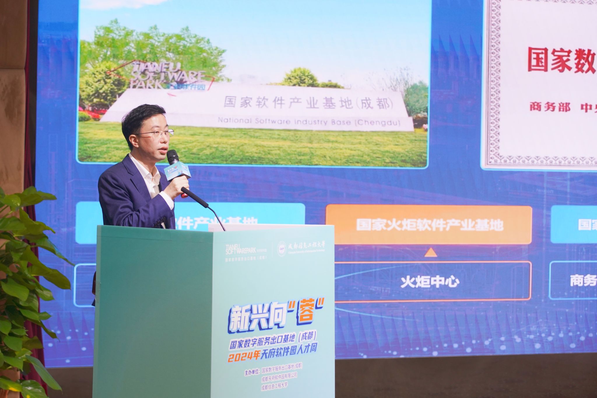 蔡伟介绍了天府软件园十余年的发展历程,目前已形成通信技术、数字娱乐、网络安全等多领域产业集群。他表示,成都信息工程大学作为一所以信息学科为特色的省直属重点高校,为园区提供了大量的优秀人才,期望以此次活动为起点,双方进一步推进园区、高校、企业的三方深度合作,实现共同发展。