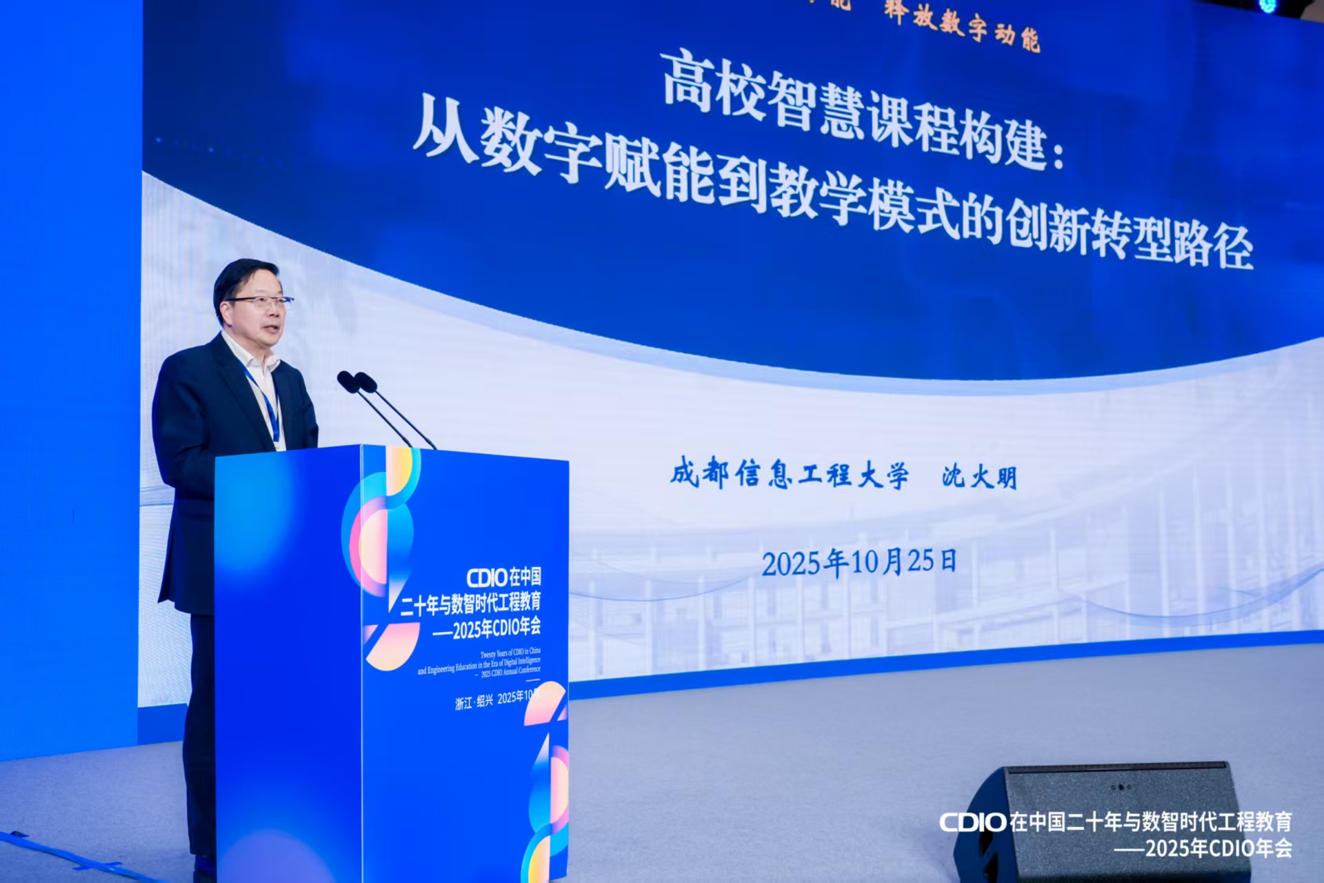 顾佩华、何晋、燕山大学原副校长赵永生、《高等工程教育研究》杂志常务副主编余东升教授共同作《CDIO在中国二十年与数智时代工程教育新转型》主旨报告,全面回顾了CDIO在中国的二十年实践进程,CDIO工程教育在成都信息工程大学的应用,并提出以AI赋能的“适应性融合创新(ACCII)”教育模式,构建“校—院—专业”三级学习工场体系,培养具备AI应用与跨学科协作能力的未来工程师。