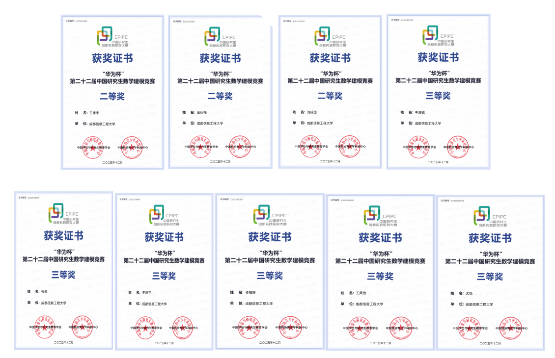 【本网讯】近日,“华为杯”第二十二届中国研究生数学建模竞赛评审结果正式公布。我校研究生团队在本届竞赛中表现优异,共斩获全国二等奖1项、三等奖2项,实现了获奖数量与质量的双重提升,形成了“从有到优、从优到强”的良性发展态势,展现了我校研究生培养质量与创新实践能力的持续攀升。