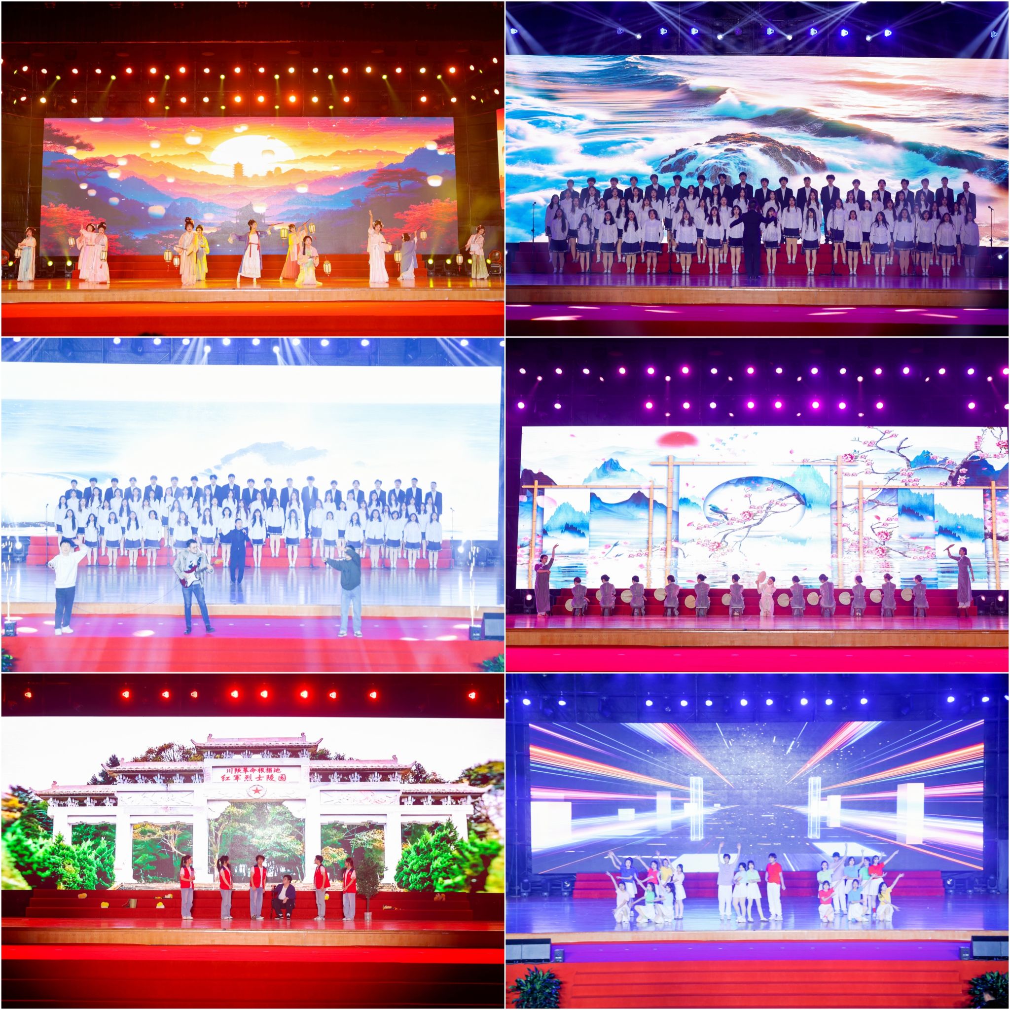 在第三篇章“新程启航”环节,离退休工作处教师合唱团带来的《唱支山歌给党听》《亲爱的你啊》传递出岁月沉淀的温暖与赤诚;民族舞《鼓声响起的地方》展现浓郁民族风情;情景诗朗诵《青春里的诗与歌》道尽少年意气;国风流行舞《岁立青云》融合经典与时尚,尽显青春风采。