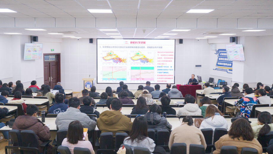 当日下午,张强院士聚焦科学前沿,作了题为“西北地区暖湿化研究新进展”的学术报告。报告会由学校副校长舒红平主持。报告会上,张强院士结合其团队长期科研实践,系统阐述了西北地区气候暖湿化的特征事实、内在机理、影响评估及应对策略。报告内容翔实、逻辑清晰,为在场师生提供了前沿的学术视角和深刻启发。
