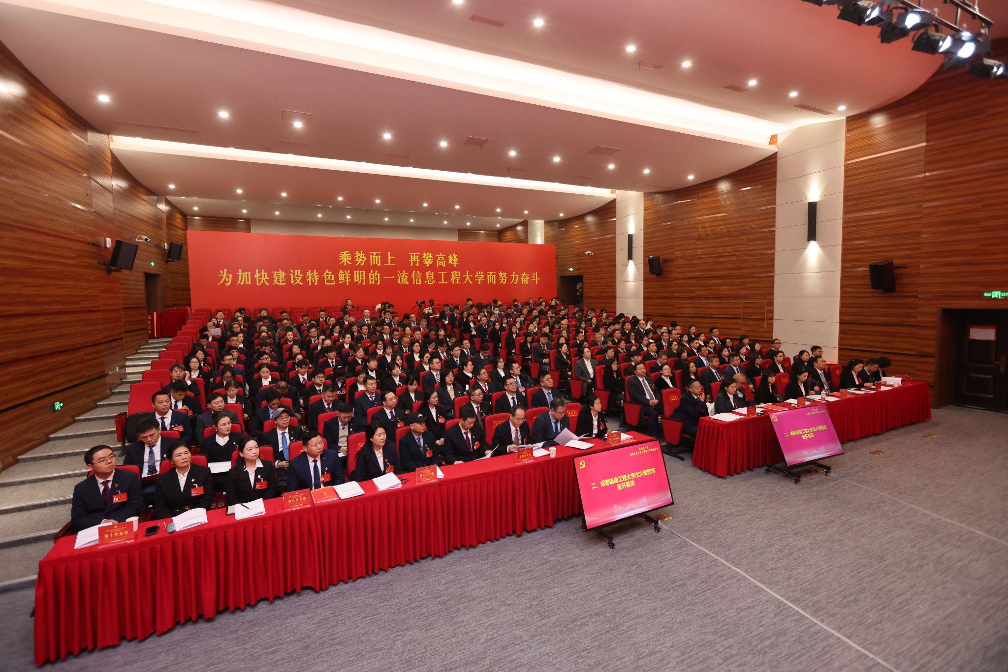 大会的主题是:高举中国特色社会主义伟大旗帜,坚持以习近平新时代中国特色社会主义思想为指导,深入学习贯彻党的二十大和二十届历次全会精神,坚持为党育人、为国育才的初心和使命,锚定教育强国、教育强省目标任务,全面落实立德树人根本任务,持续提升学校思政引领力、人才竞争力、科技支撑力、民生保障力、社会协同力、国际影响力,引领全校师生员工进一步乘势而上、再攀高峰,为加快建设特色鲜明的一流信息工程大学而努力奋斗!
