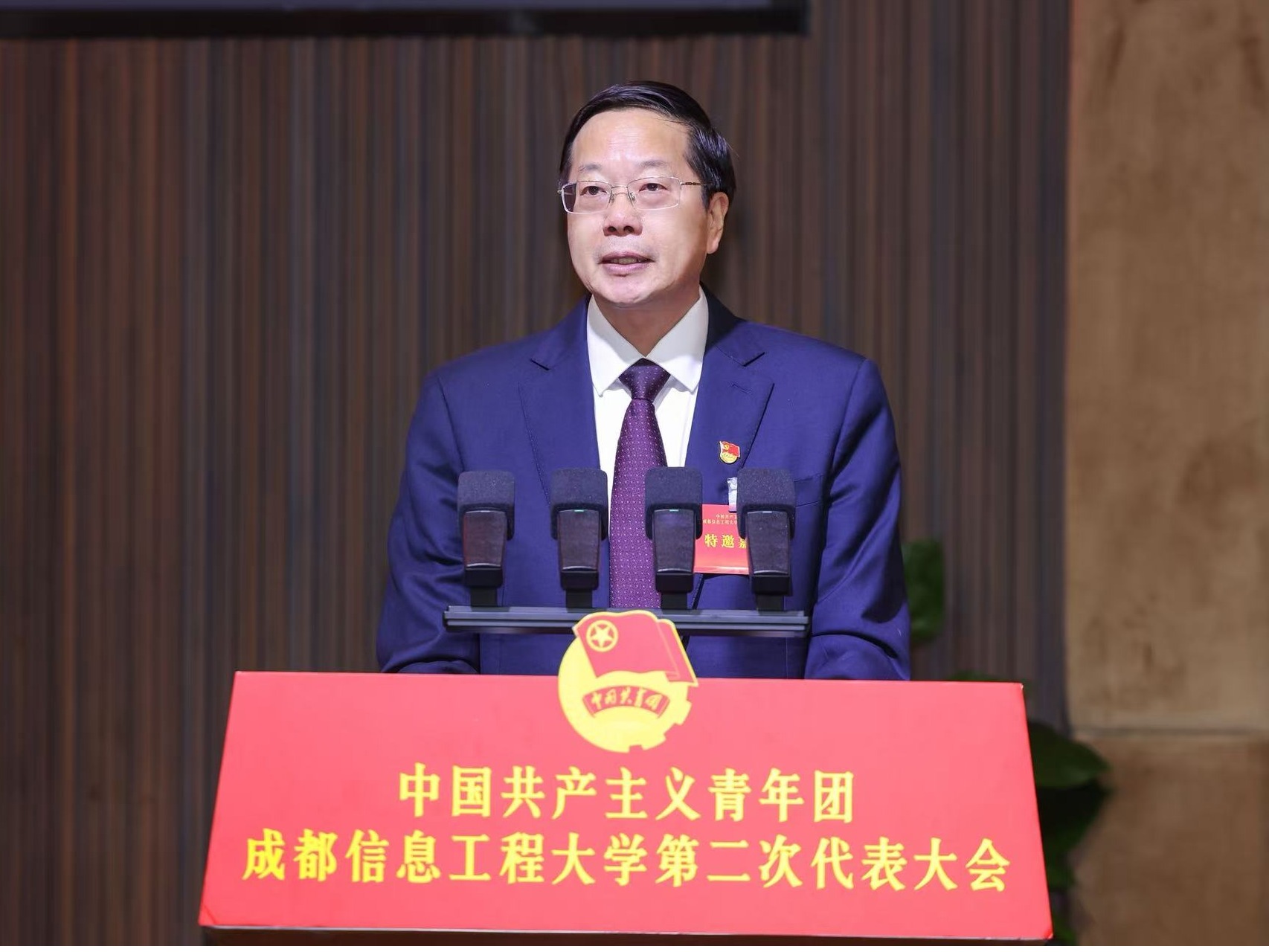 沈火明代表学校党委向大会召开表示热烈祝贺,向关心支持学校共青团工作的团省委、团市委及兄弟院校致以衷心感谢,向全体代表、全校广大团员青年、团干部和青年工作者致以诚挚问候。他指出,当前全校正深入学习贯彻党的二十届四中全会精神,扎实开展树立和践行正确政绩观学习教育,全面落实党建带团建要求,奋力开启“十五五”高质量发展新征程,此次大会既是全校团员青年的政治大事,也是总结过往、擘画未来的青春盛会。他提出三点期望:一是坚守政治之魂,始终坚持把牢政治方向,引导青年把爱党爱国之情与爱校荣校之行统一起来,筑牢听党话、跟党走的思想根基与行动自觉;二是要汇聚青春之力,依托学校学科特色优势,在关键核心技术、“卡脖子”难题上攻坚克难,在服务大局中贡献力量,为中国式现代化建设贡献青春力量;三是筑牢活力之基,纵深推进共青团改革,树立和践行正确政绩观,锤炼过硬履职本领,用心为青年办实事。他表示,学校即将迎来建校75周年,希望全校团员青年牢记嘱托、勇担使命,学校党委将一如既往支持共青团工作,团结带领全体青年凝心聚力、奋勇争先,为建设一流信息工程大学、实现民族复兴书写成信青春华章。