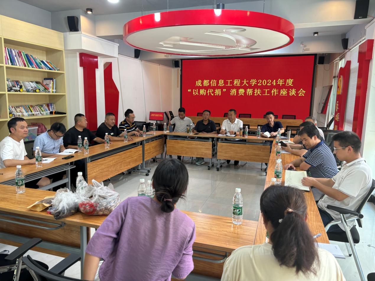 张斌兵回顾了年初以来学校定点帮扶工作开展情况,重点就“以购代捐”消费帮扶作了说明,希望能以学校选派驻村干部所在村为切入口,利用沙湾村现有村集体公司,通过“832平台”,购买泸定当地农副产品,以满足学校师生员工消费需求为出发点,顺利完成学校年度消费帮扶任务。学校工会专职副主席周波、后勤基建处党委书记李璘来分别介绍了校工会会员节日慰问品、学校食堂农副产品购买数量及产品需求。