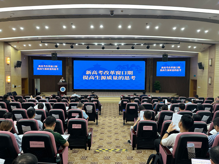 【本网讯】为更好适应新高考改革要求,理解新高考改革布局思路及实际经验,9月12日下午,学校特邀请东南大学管理学博士、研究员孙莉玲到校作专家讲座。讲座在我校航空港校区国际会议厅举行,学校校长何建新、副校长陈权亮,教务处、招生就业处、学生工作处、国际交流与合作处、教学评估中心负责人,各学院书记、副书记、院长、副院长、各本科专业负责人,教务处及招生就业处相关人员,招生宣传教师等参加了讲座。