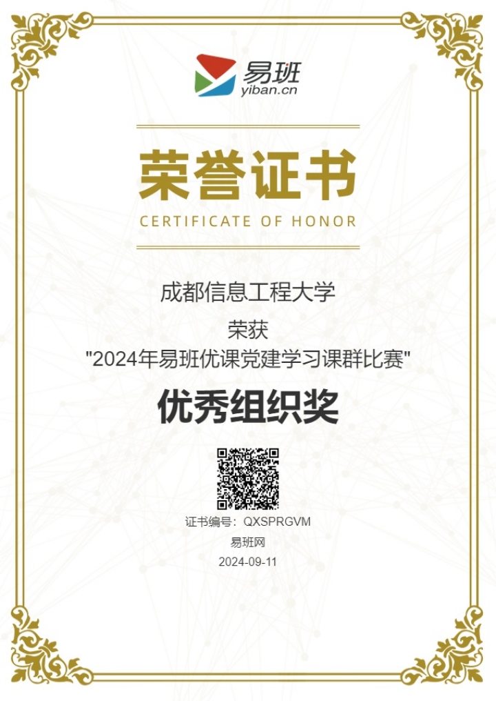 【本网讯】为汇聚和建设党建示范内容,加强学生群体中的入党积极分子孵化,引导广大师生组织开展党史学习教育,全国易班优课平台开展了“2024年易班优课党建学习课群比赛”活动,我校荣获“2024年易班优课党建学习课群比赛”优秀组织奖。
