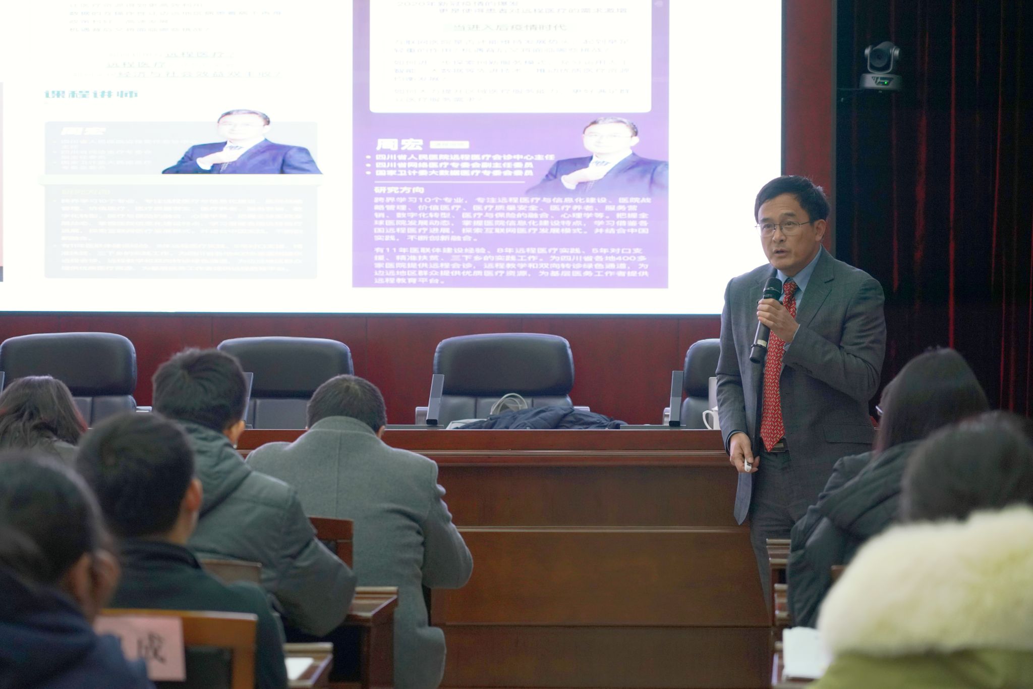 【本网讯】11月25日,电子科技大学五星课程优秀教师、四川省人民医院远程会诊中心前主任、国家卫计委大数据医疗专委会委员周宏副教授,为我校新进教师和骨干教师带来了一场题为《数字化转型时代的高效工作学习及成为有温度的老师》的精彩报告。超过100名一线教师,人事处(党委教师工作部)相关负责人和工作人员参加了此次报告会。报告会由人事处(党委教师工作部)副处长谢睿主持。