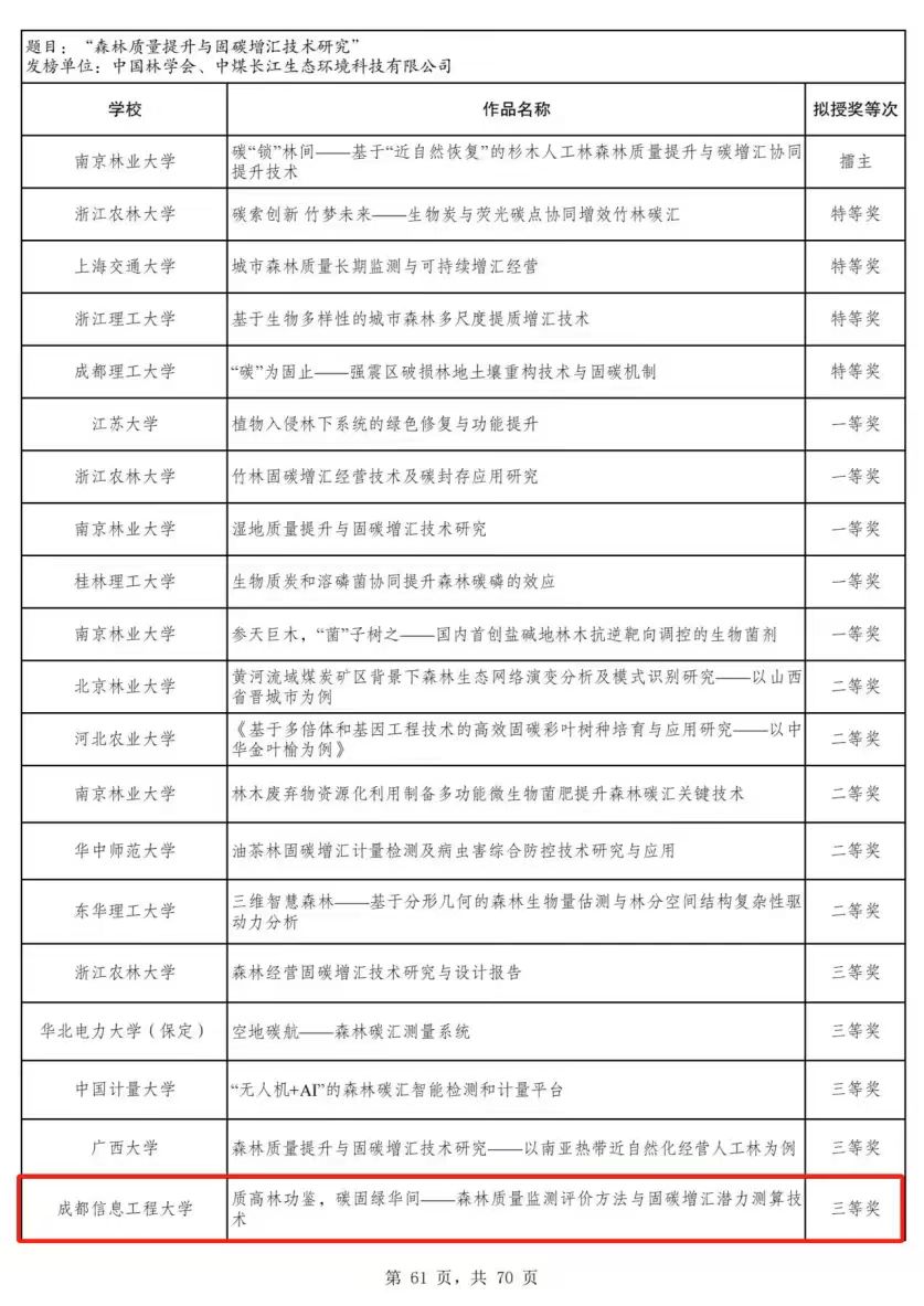 【本网讯】11月15日-17日,第十九届“挑战杯”全国大学生课外学术科技作品竞赛2024年度“揭榜挂帅”专项赛(浙江场)终审决赛在浙江理工大学和中国计量大学举行。经过精彩答辩和激烈角逐,我校参赛团队《质高林功鉴,碳固绿华间-森林质量监测评价方法与固碳增汇潜力测算技术》(马艺洪、王童、邓昊然、谢佳明、姜海强)经过激烈角逐,荣获全国三等奖。