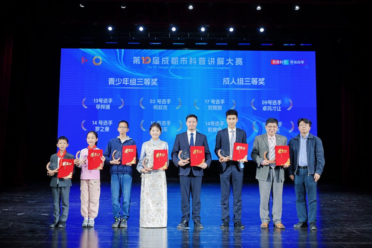 经过激烈角逐,卓玛才让同学凭借出色表现荣获成人组三等奖,并被授予"蓉城十佳科普使者"称号,杨燕老师获得优秀奖,成都信息工程大学气象科普基地获得优秀组织奖。这是我校首次在该项赛事中斩获奖项,实现了历史性的突破。