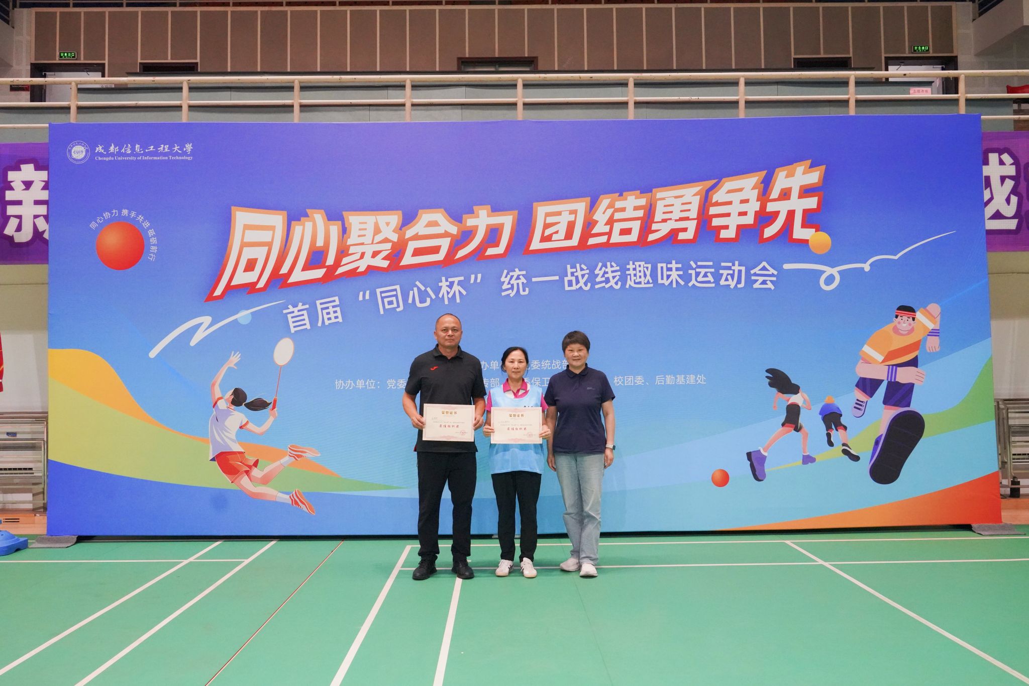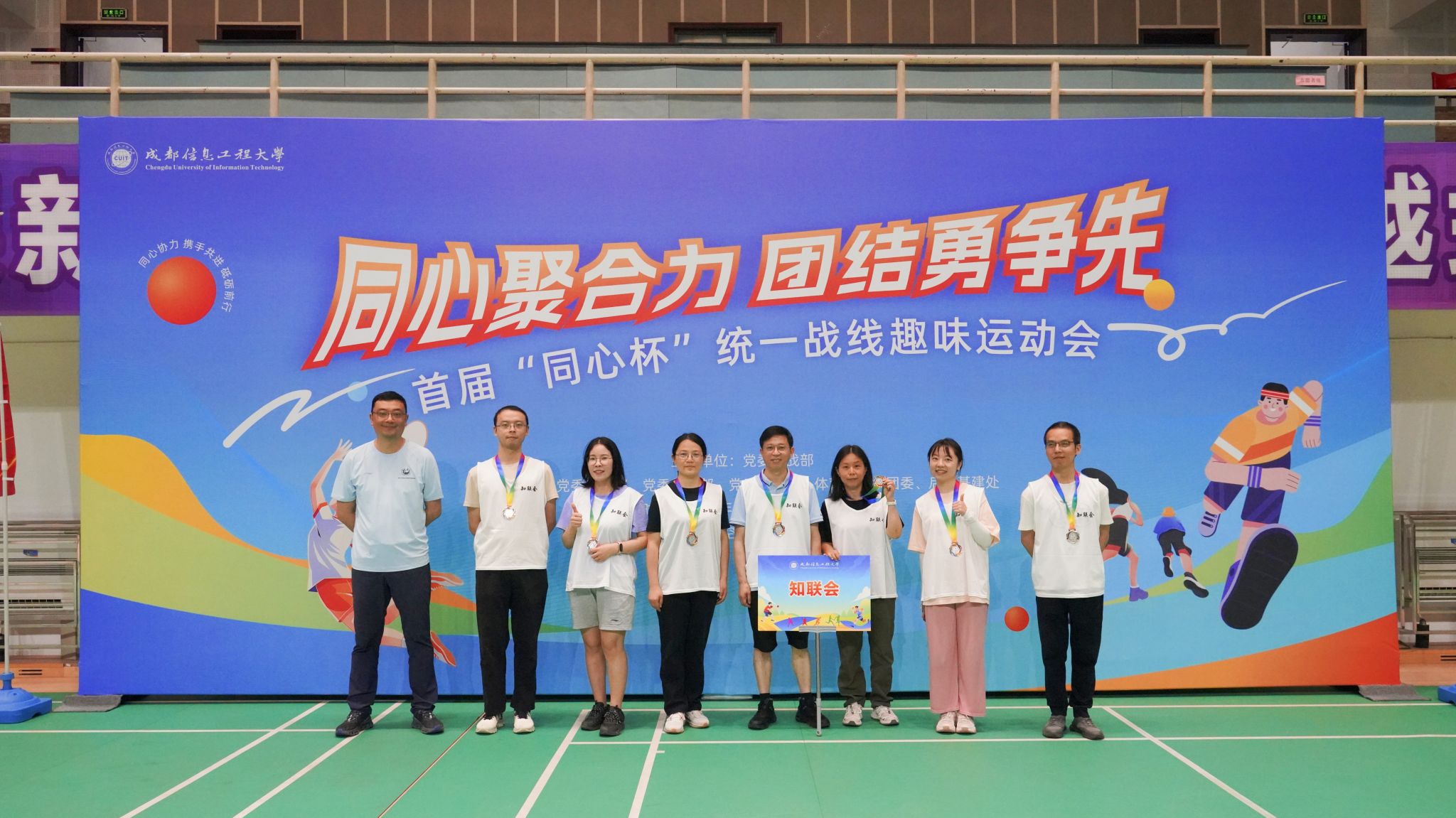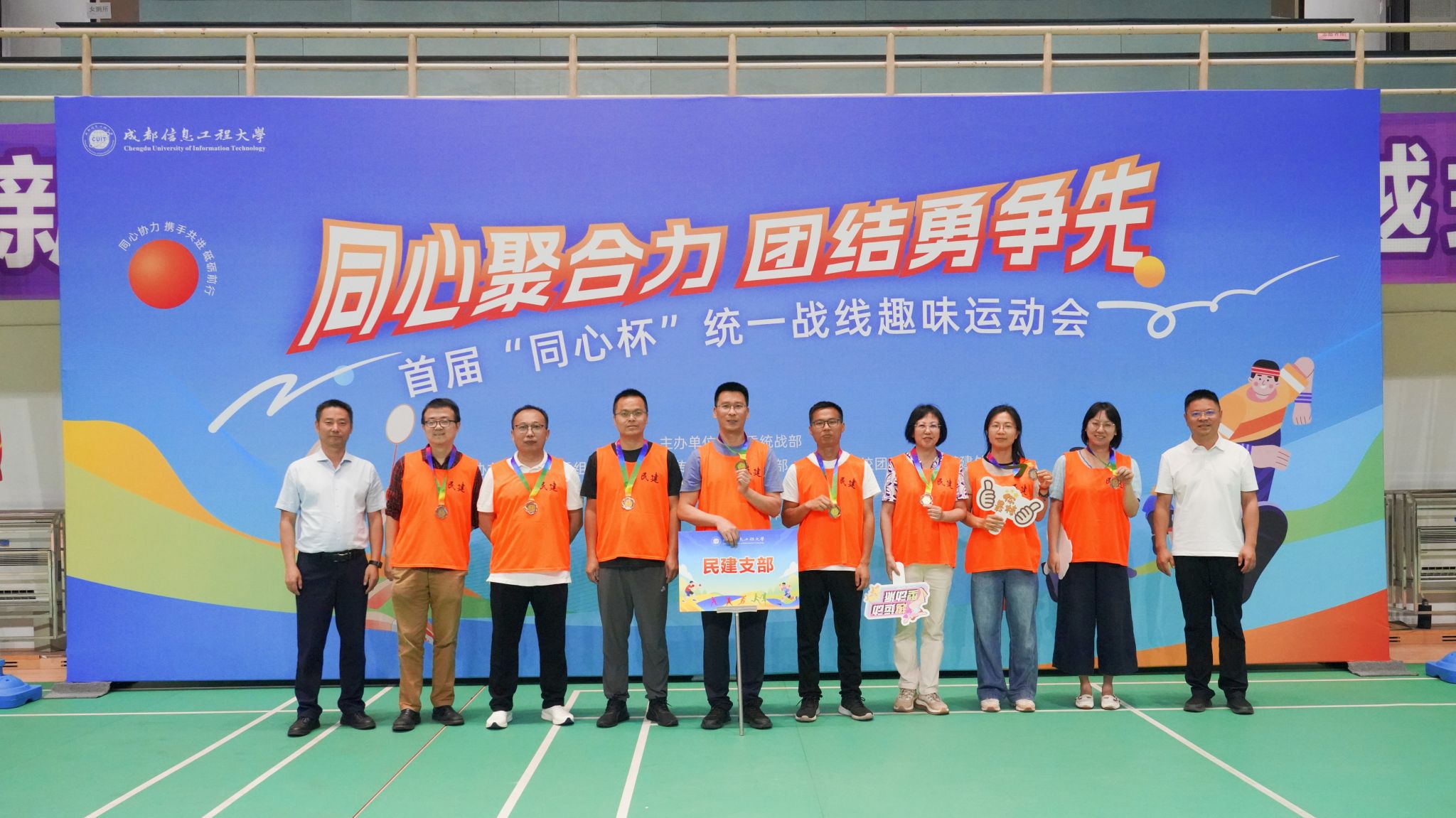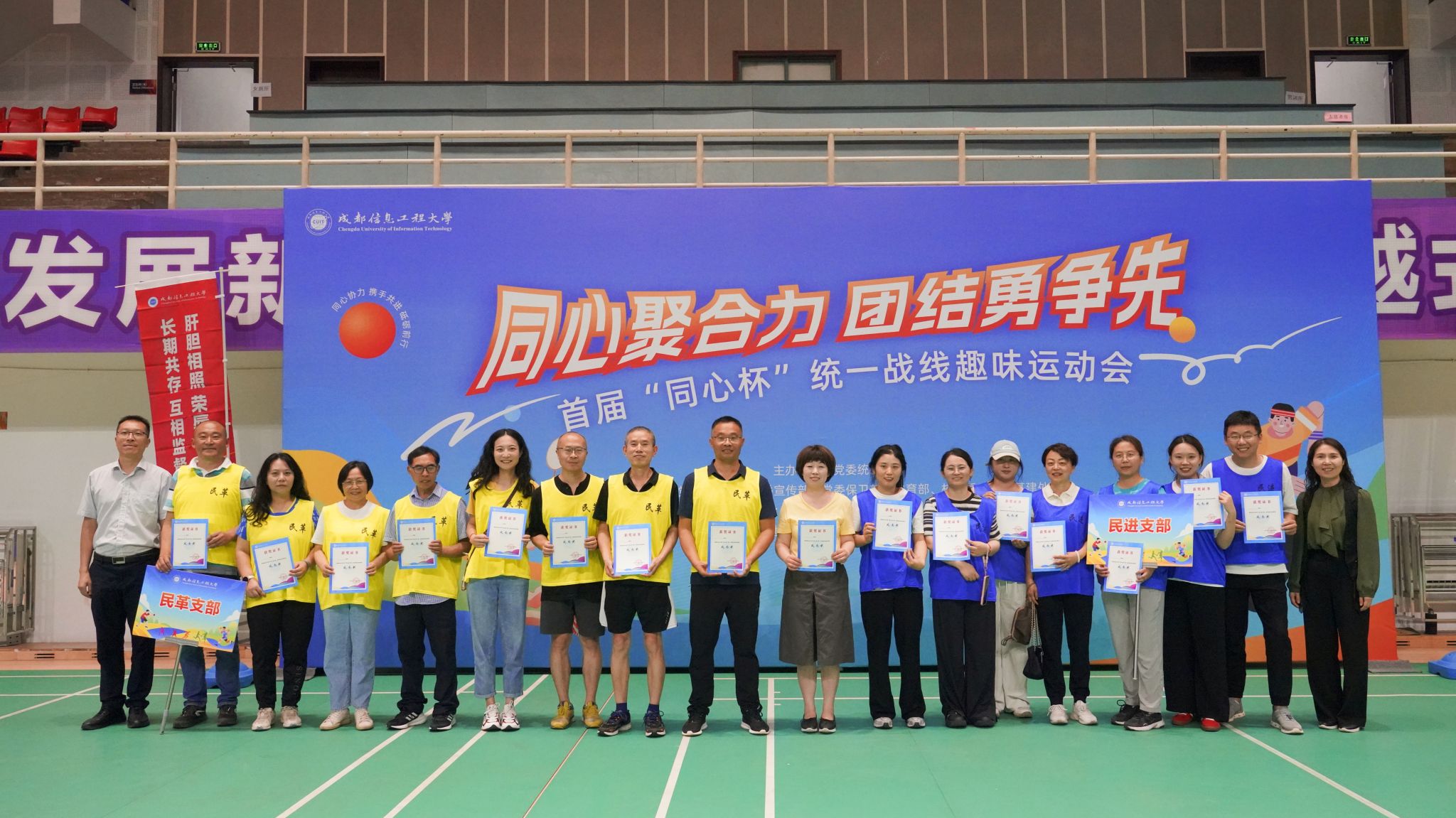 【本网讯】为加强统一战线成员之间沟通交流和团结协作,展现学校统一战线成员“同心聚合力、团结勇争先”的精神风貌,6月5日下午,学校党委统战部联合党委组织部、党委宣传部、党委保卫部、体育部、校团委、后勤基建处在航空港校区体育馆举办首届“同心杯”统一战线趣味运动会和游园会。省纪委监委驻校纪检监察组组长、学校党委副书记、纪委书记王琪,党委副书记杨奇才,党委常委、副校长吴锡、陈权亮、何晋,党委常委、党委组织部部长、党委统战部部长熊建,党委常委、党委宣传部部长、机关党委书记张小红参加活动。学校九三学社委员会、民革支部、民盟支部、民建支部、民进支部、农工党支部、知联会和欧美同学会等8支队伍100余人,在运动中充分展现了“大团结、大联合”的精神面貌。