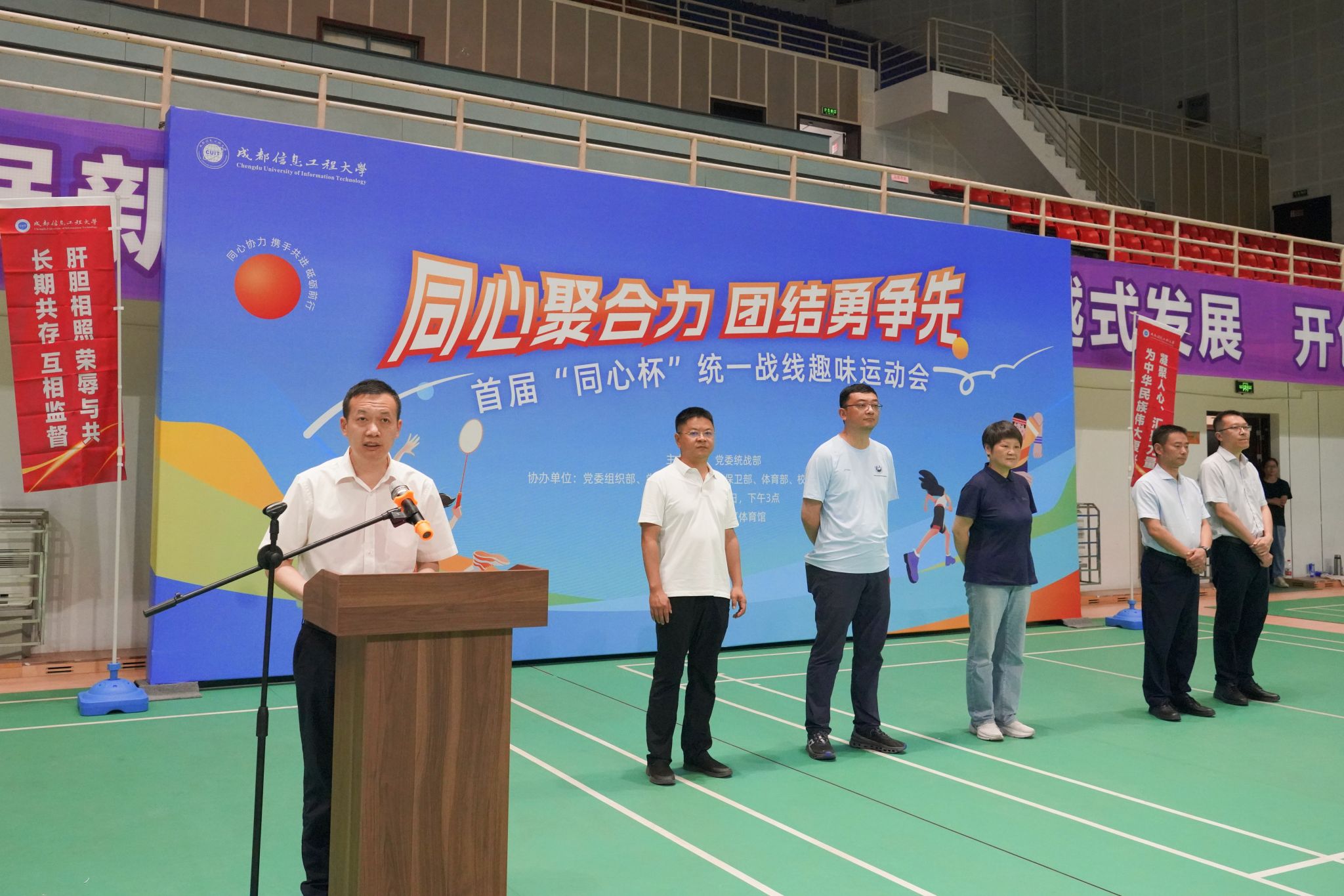 杨奇才在致辞中表示,此次运动会是广大统一战线成员强健体魄、增进感情、凝心聚力的平台,有利于巩固发展全校统一战线团结、奋进、开拓、活跃的良好局面。他希望,统一战线成员以本次运动会为契机,不断巩固团结奋斗的共同思想政治基础,进一步找准统一战线服务中心大局的切入点、着力点和结合点,同心同德推进学校各项事业高质量发展。
