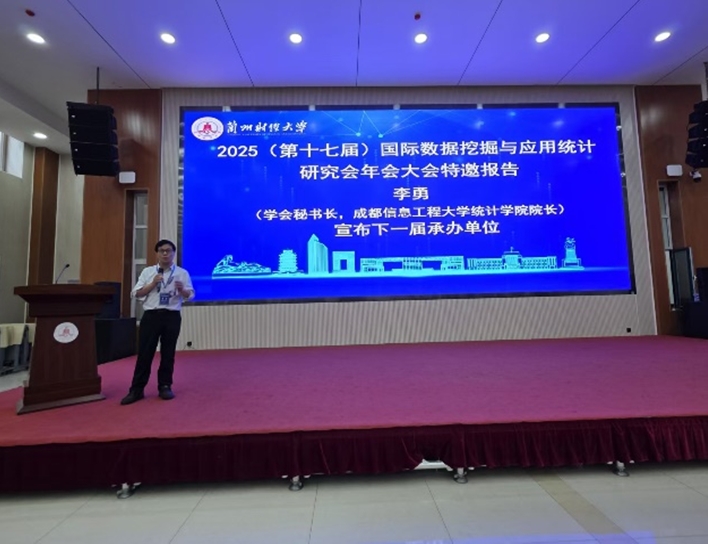 学会秘书长、教育部统计学类专业教指委委员、成都信息工程大学统计学院院长李勇教授就大数据时代统计学的新认知作总结性报告,并宣布2026(第十八届)国际数据挖掘与应用统计研究会年会的承办单位。