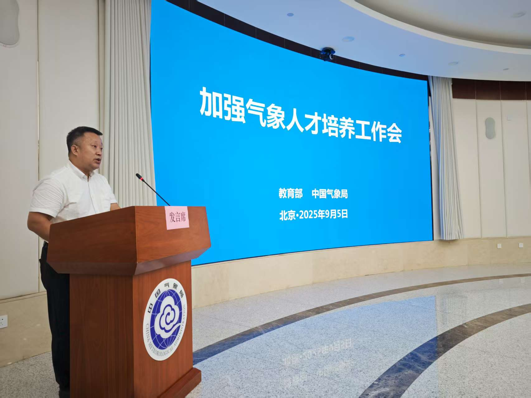 【本网讯】9月5日,中国气象局与教育部在北京联合召开加强气象人才培养工作会议,会议旨在落实《教育部 中国气象局关于进一步加强气象人才培养工作的若干意见》文件精神,部署推进下一步工作。教育部高等教育司司长周天华,中国气象局副局长张祖强、曹晓钟出席。会议由曹晓钟主持。学校副校长舒红平受邀出席会议并代表学校发言。