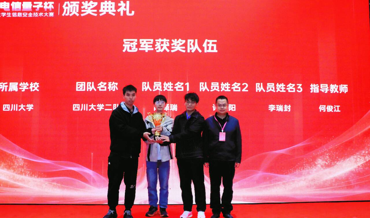 10月26日下午,大赛颁奖典礼在学校双流新型产业学院举行。学校副校长舒红平、中共四川省委网信办网络安全处处长魏杰、四川省公安厅反诈中心主任李文德、中国电信股份有限公司双流区分公司副总经理郑宇、南京赛宁信息技术有限公司总经理高庆官、四川省网络空间安全协会副理事长周成龙以及学校相关部门领导和嘉宾出席了颁奖典礼。