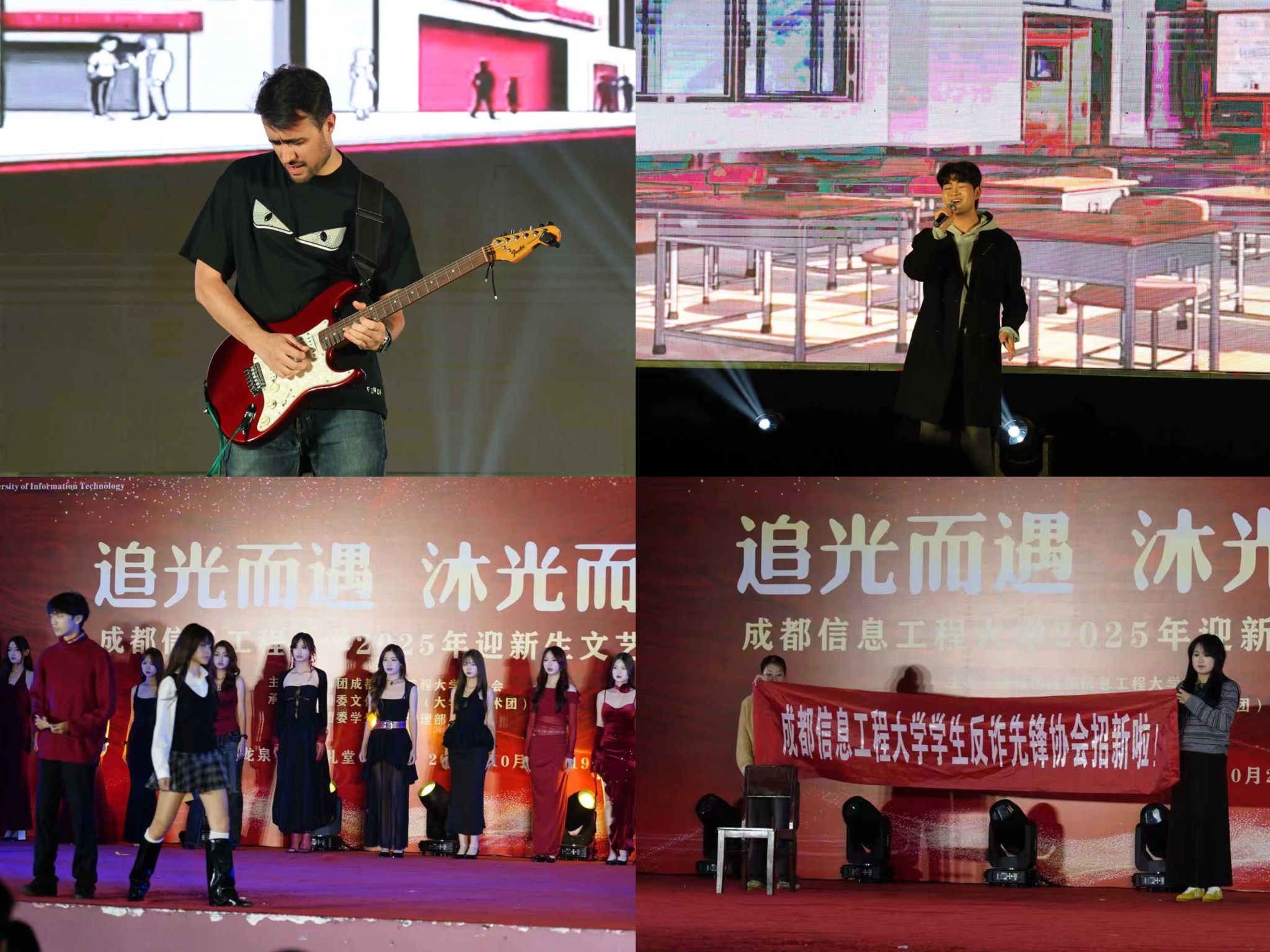 【本网讯】金秋蓉城,桂香满园。10月27日、29日,学校“追光而遇·沐光而行”2025年迎新生文艺晚会先后在龙泉校区与航空港校区举行。学校副校长陈权亮,各职能部门负责人,二级学院团委书记,教师代表与2025级新生齐聚一堂,共同观赏这场融合视听艺术与人文精神的青春盛典。