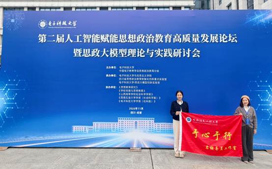 【本网讯】11月16日,第二届人工智能赋能思想政治教育高质量发展论坛暨思政大模型理论与实践研讨会在电子科技大学(清水河校区)经济与管理学院会议厅隆重开幕。本次论坛紧扣教育数字化转型趋势,为思政教育创新发展搭建高端交流平台。我校“于心于行”省级名辅导员工作室受邀参会。