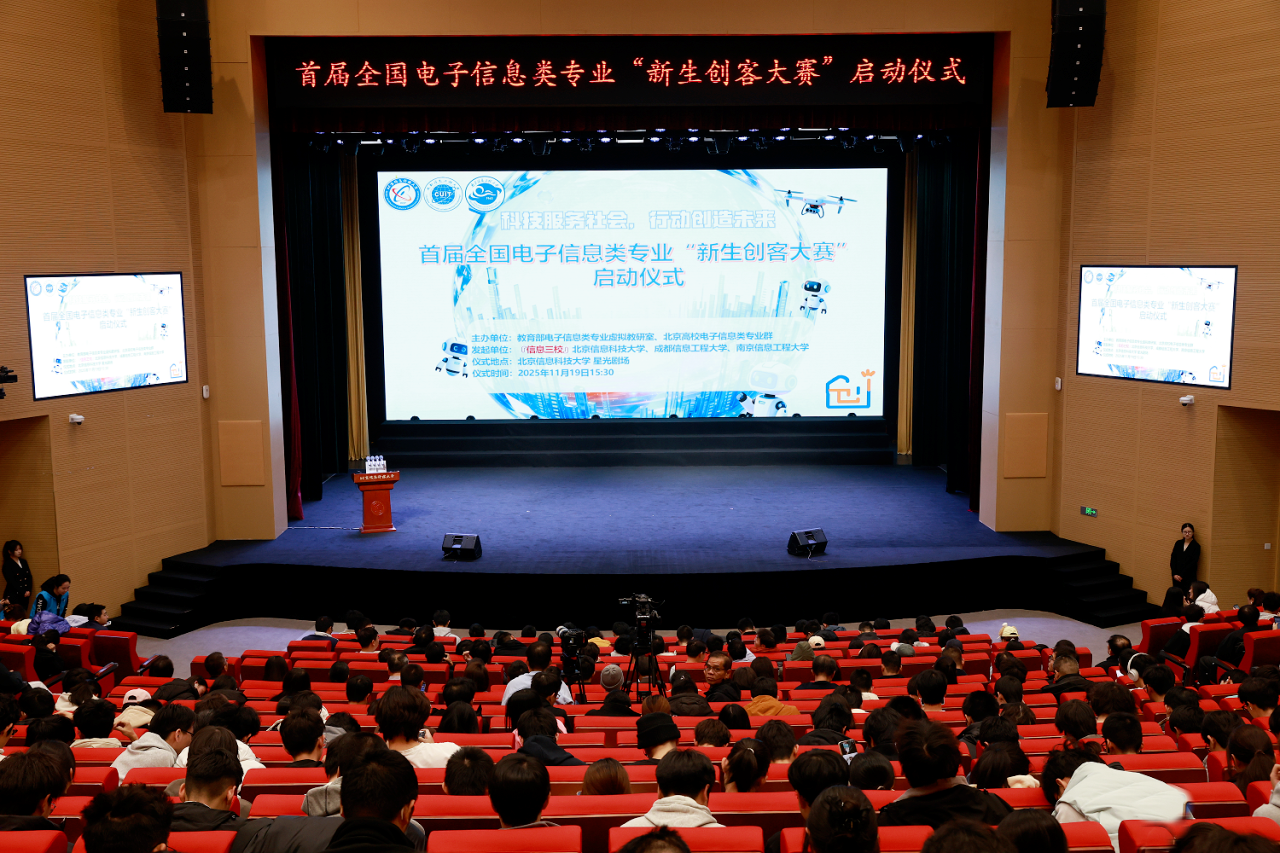 【本网讯】11月19日,由教育部电子信息类专业虚拟教研室、北京高校电子信息类专业群主办,北京信息科技大学、成都信息工程大学、南京信息工程大学(以下简称“信息三校”)共同发起并承办的首届全国电子信息类专业新生创客大赛在北京信息科技大学启动。北京信息科技大学党委副书记、校长郭福,成都信息工程大学党委常委、副校长陈权亮,南京信息工程大学党委常委、副校长刘佳,北京信息科技大学党委常委、副校长肖志松,北京市教委高教处副处长王佳琦,教育部电子信息类专业虚拟教研室副主任郭彩丽,中国教育报刊社编审、《中国高等教育》新媒体总监黄蔚等嘉宾出席活动。