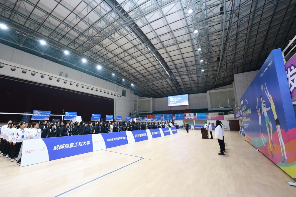 【本网讯】11月29日上午,由四川省教育厅、四川省体育局、共青团四川省委主办,四川省大学生体育协会、四川省排球协会执行,成都信息工程大学承办的四川省第六届“贡嘎杯”青少年校园体育超级联赛(排球高校女子校园组)开幕式在学校体育馆举行。学校副校长何晋、体育部党委书记程艺、赛区管委会主任兼裁判委员王志杰、赛区纪律监督王世伟、四川省大学生体育协会竞训部排球项目负责人沈佳炘、赛区技术委员邹勤、全体裁判员以及各参赛单位领队、教练和运动员参加开幕式。