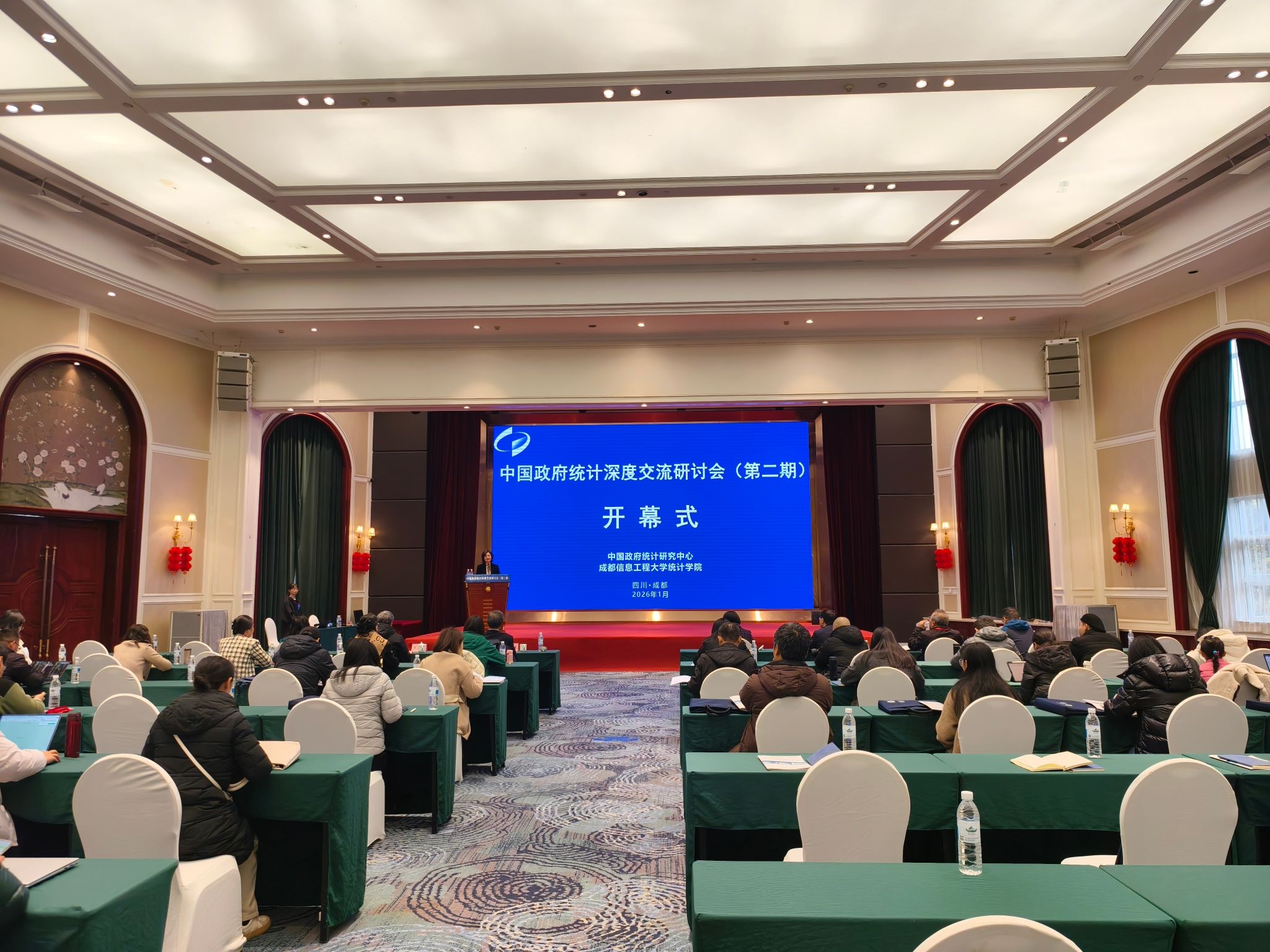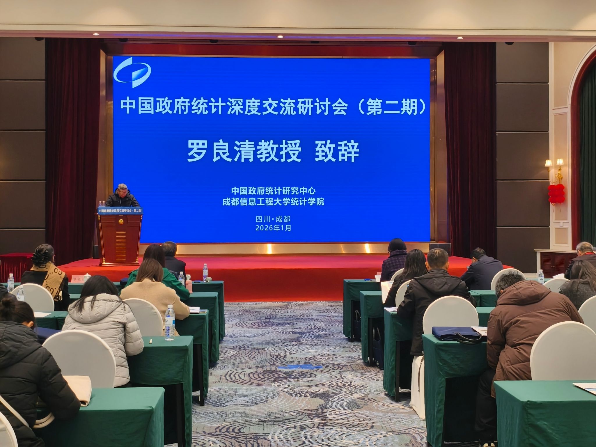 【本网讯】1月25日至30日,中国政府统计深度交流研讨会(第二期)在成都举行。本次会议由中国政府统计研究中心和我校统计学院共同主办。国家统计局原副局长许宪春,中国政府统计研究中心院长、江西财经大学首席教授罗良清,国家统计局投资司原司长汲凤翔、投资司原巡视员李俊波、贸经司原司长董礼华、服务业司原司长杜希双、原处长孙慧,中国人民银行调查统计司制度处处长张璇,以及来自全国多所高校的院长、系主任、学科负责人和青年教师代表等近百人参会。学校统计学院院长李勇,副院长范乔希及系主任和青年教师等参会。开幕式由统计学院党委副书记、纪委书记王燕主持。
