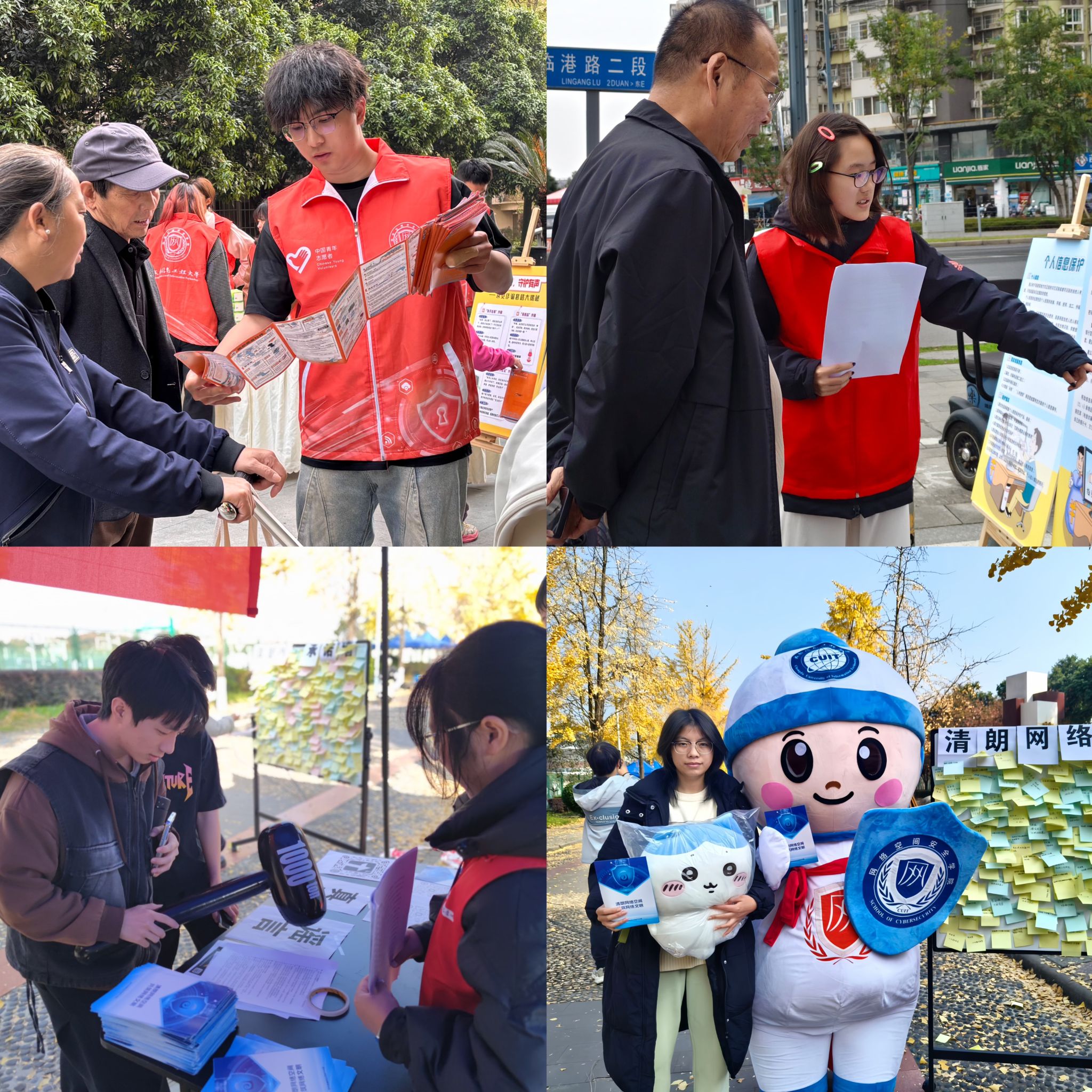 此外,团队邀请中共四川省委网信办专家到校,围绕网络举报流程、辟谣知识普及、宣讲注意事项等内容为志愿者开展系统培训。志愿队深入社区、街道、学校开展“骗局无形,守护有声”反诈宣传系列活动,着重讲解电信网络诈骗高发类型与防范技巧,助力基层筑牢反诈防线。
