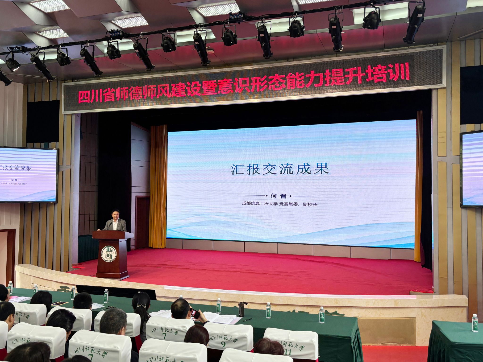 【本网讯】4月15日,由四川省教育厅举办的“师德师风建设能力提升培训班”在成都举办。四川省教育厅副厅长蔡光洁作开班报告。学校副校长何晋代表学校参加培训。
