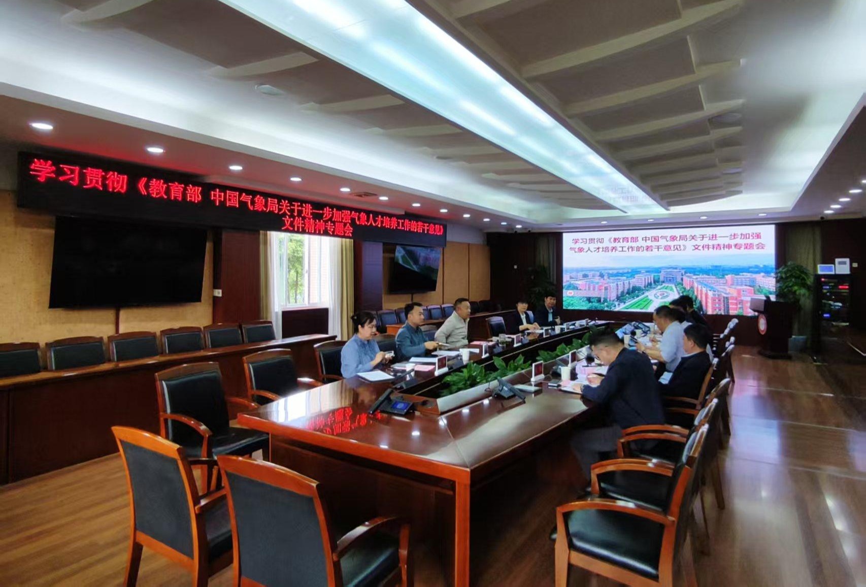 【本网讯】4月20日下午,学校在行政楼七会议室召开专题会议,深入学习贯彻《教育部 中国气象局关于进一步加强气象人才培养工作的若干意见》(以下简称《意见》)及《中国气象局人事司关于印发2026年贯彻落实<教育部 中国气象局关于进一步加强气象人才培养工作的若干意见>任务清单的通知》文件精神,研究讨论学校贯彻落实的具体工作思路与实施方案。学校副校长舒红平参加会议并讲话。会议由科技处副处长柳锦宝主持。