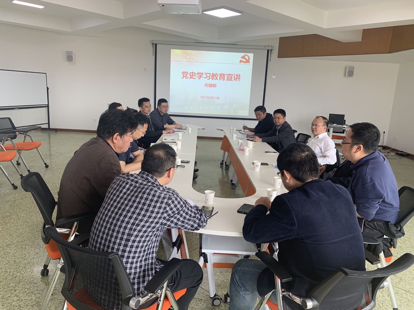 【本网讯】为深入学习中国共产党百年历史和伟大成就,从中汲取经验、昂扬斗志,4月23日上午,学校党委常委、副校长何建新在信息楼六楼会议室作了题为《学党史 悟思想 办实事 开新局》的专题宣讲。应用数学学院、物流学院、区块链产业学院、工程实践中心、教务处及研究生处党员师生代表参加宣讲学习。