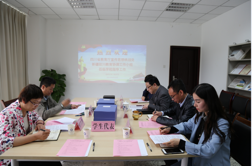 【本网讯】4月22日,四川省教育厅宣传思想与统战处刘向晖一行3人来校,就少数民族学生教育服务管理情况进行调研。学校学生工作部负责人、内派教师、少数民族专职辅导员及学生代表参加了座谈会。