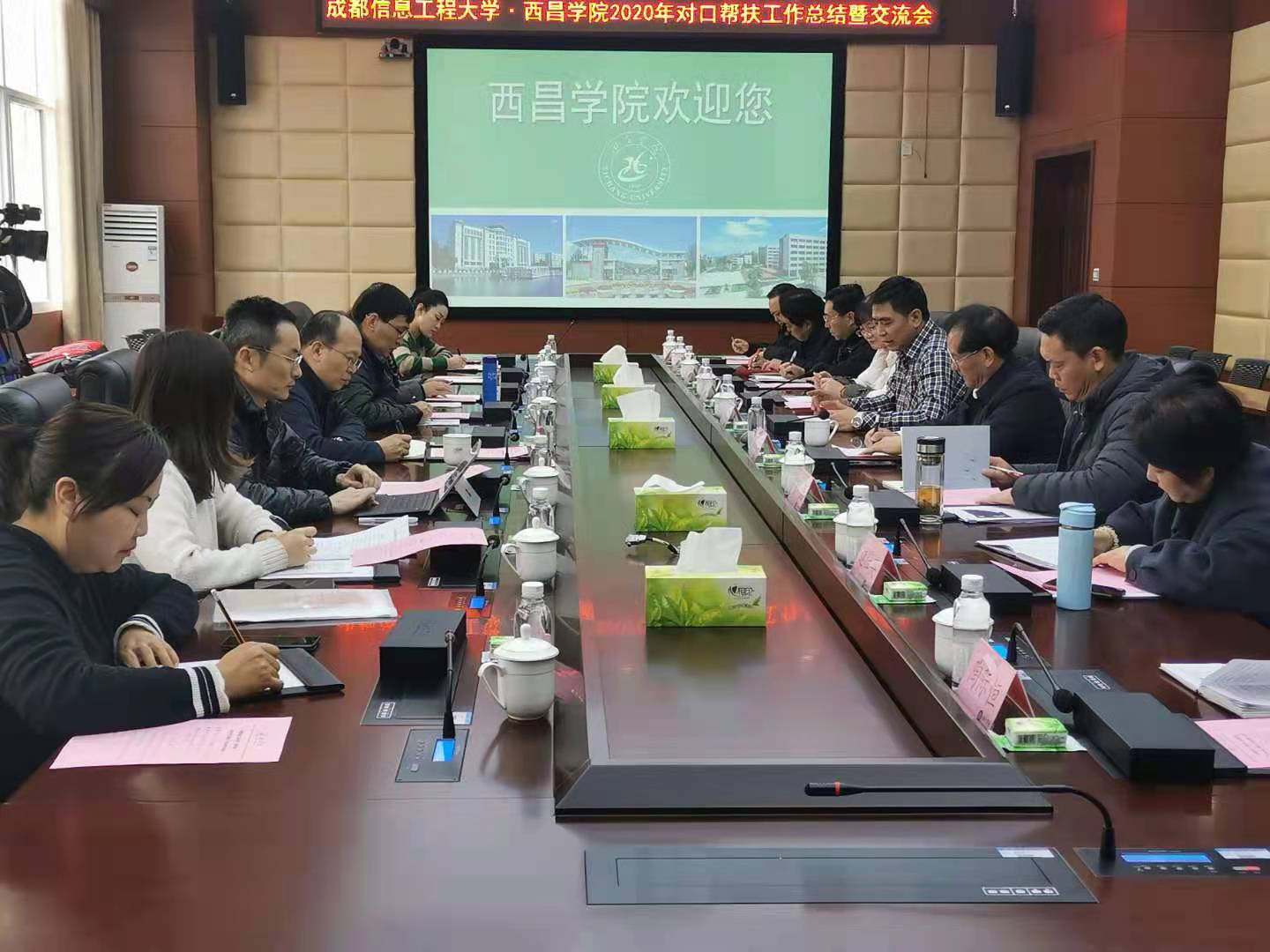 【本网讯】12月3日-4日,学校党委常委、副校长何建新带队赴西昌学院推进对口帮扶工作。学校党委组织部、教务处、科技处、党委教师工作部、国际交流与合作处、电子工程学院、资源环境学院、计算机学院、物流学院等相关负责人参加了对口帮扶年度总结与交流会,并分别开展了系列专题讲座、教学示范课与业务座谈。西昌学院党委常委、副院长陈小虎,党委常委、副院长曲木伍各及各相关职能部门负责人参加了总结交流会。会议由曲木伍各主持。