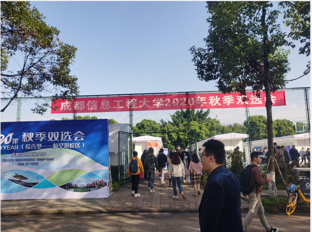 【本网讯】金秋十月,秋高气爽,2020年四川省“智慧天府”公共招聘会——走进成都信息工程大学专场,于2020年10月21日,在我校第一篮球场成功举办。