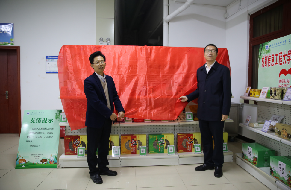 【本网讯】10月13日上午,成都信息工程大学航空港校区教工餐厅人潮涌动、热闹非凡,校内首个“扶贫产品专柜”正式揭牌成立。副校长肖月强,党委组织部(扶贫办)部长熊建,党委组织部、校工会、后勤基建处领导及甘孜州、达州市企业代表参加了本次揭牌仪式。