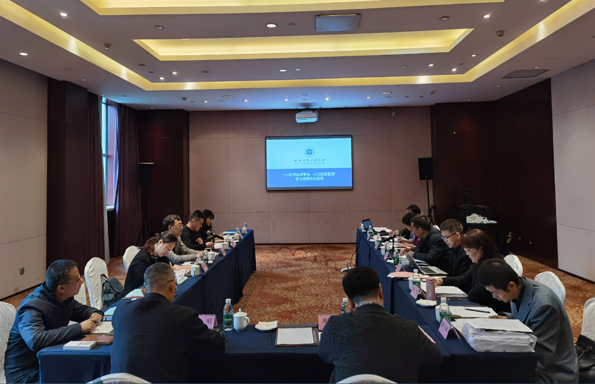 【本网讯】10月13日,四川省教育考试院在成都召开“1+X证书”项目论证会,对我校自学考试人力资源管理专业“1+X证书试点”学习成果转化项目进行论证。项目论证专家来自中国人力资源开发研究会、四川省人社厅、成都信息工程大学的专家组成,专家组组长由中国人力资源开发研究会副秘书长李直担任。四川省教育考试院自学考试处处长曹国栋、副教授邹函,成都信息工程大学继续教育学院党总支书记周鑫、院长黎明及相关工作人员参加了会议。论证会由省教育考试院自学考试处徐磊主持。