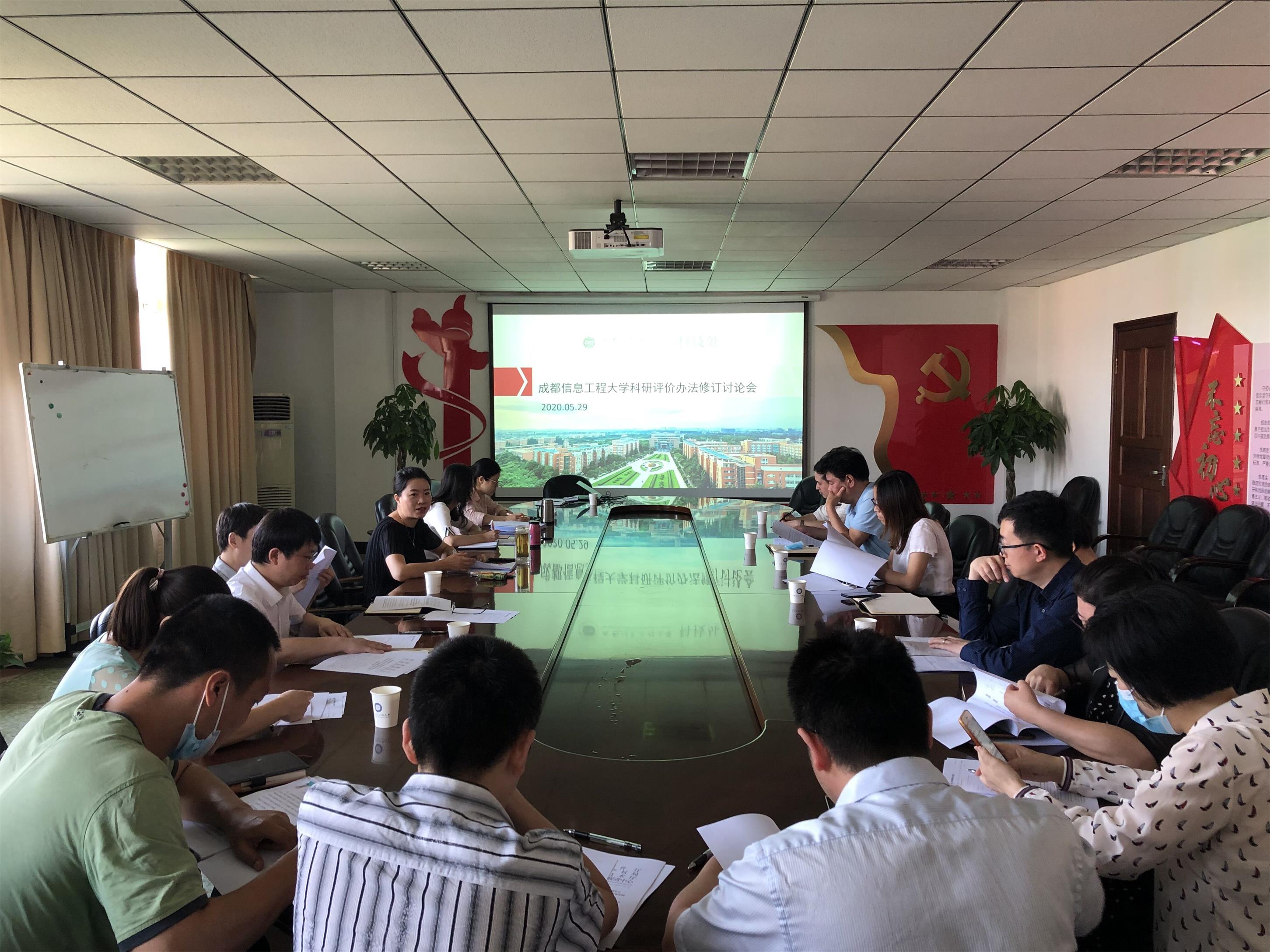 【本网讯】5月29日上午,科技处在行政楼九会议室召开成都信息工程大学科技成果评价管理办法修订讨论会,各学院分管科研工作负责人和科技处相关工作人员参加会议。科技处副处长宋雪茜主持会议。