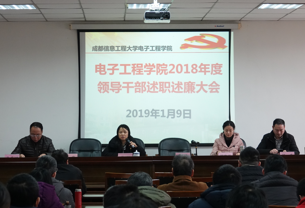 【本网讯】1月11日,电子工程学院2018年度领导班子述职述廉大会在气象楼215召开。电子工程学院全体教职工参加了会议。会议由学院院长杨玲主持。