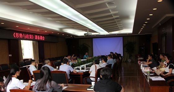 马克思主义学院邀请了“形势与政策”课教学经验丰富的鲜红老师和王燕老师分享了形策课的经验。鲜红老师基于自身经验介绍了形策课教学的特点注意事项,王燕老师主要介绍了形策课实践的评分标准等细节问题。全体参会人员就2018年版“形势与政策”课教学大纲的修订和其他教学中存在的若干问题进行了热烈的研讨,达成了共识。教研室主任廖宇老师就教改课题申报作了动员。